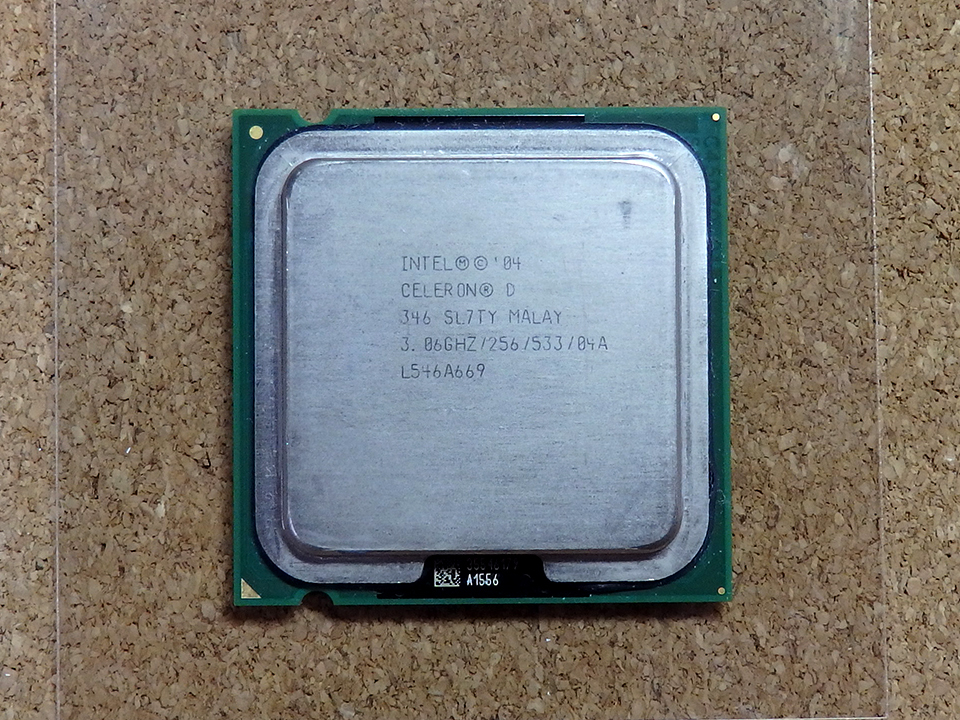 Intel Celeron D 346 3.06GHzです。動作PCからの取り外し品を長期保管していた物となりますが、現在動作確認できる環境が無いため出品にあたって改めての動作チェックは行っておりません。目視確認した限り物理的な破損などは無さそうですが、動作未チェック品ということをご理解ください。返品・返金は受け付けておりません。