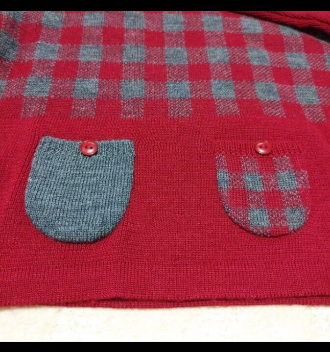表はスクエア柄、裾に可愛くポケット飾りが4個着いています。