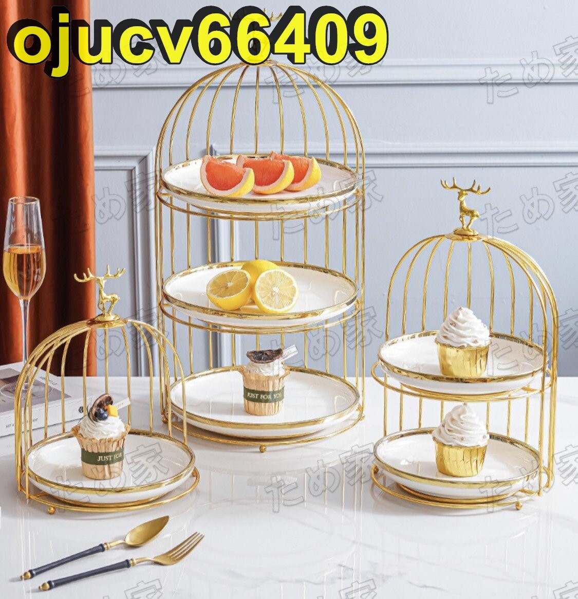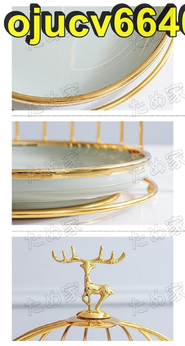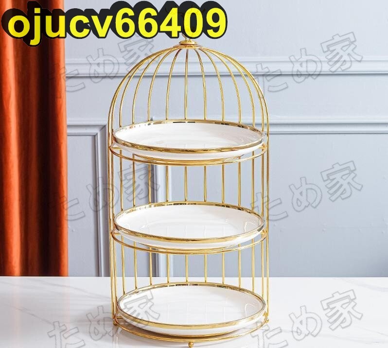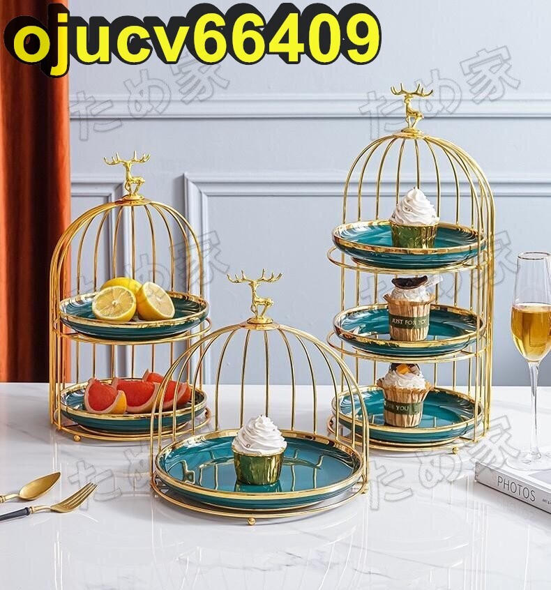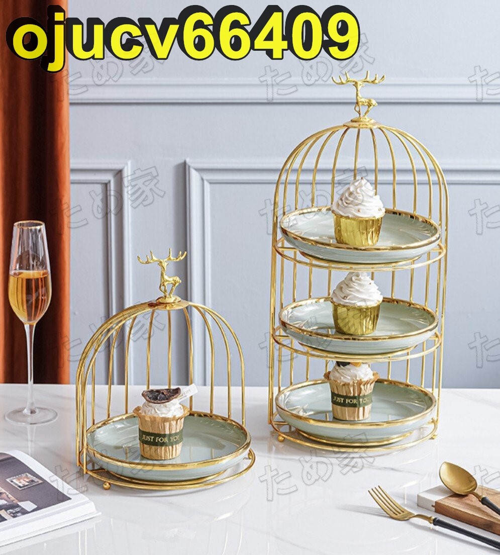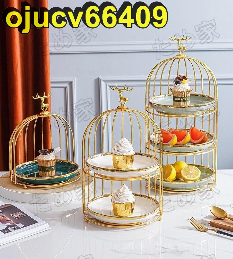 美品★北欧ケーキ スタンド プレート3段セット アフタヌーンティー フルーツ鳥籠 トレー 皿 L