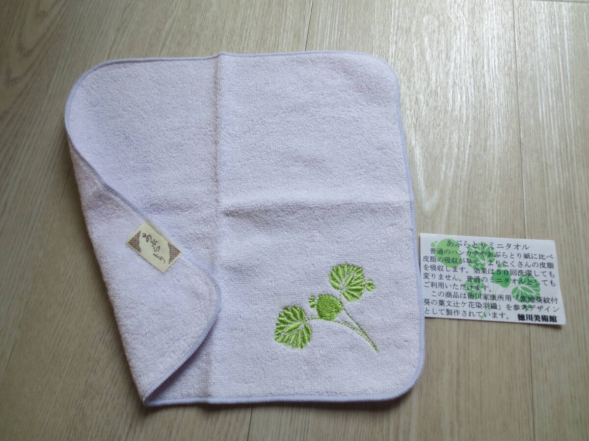 徳川美術館のタオルハンカチは皮脂とり加工がされ効果は50回洗濯しても変わりませんと記載あり