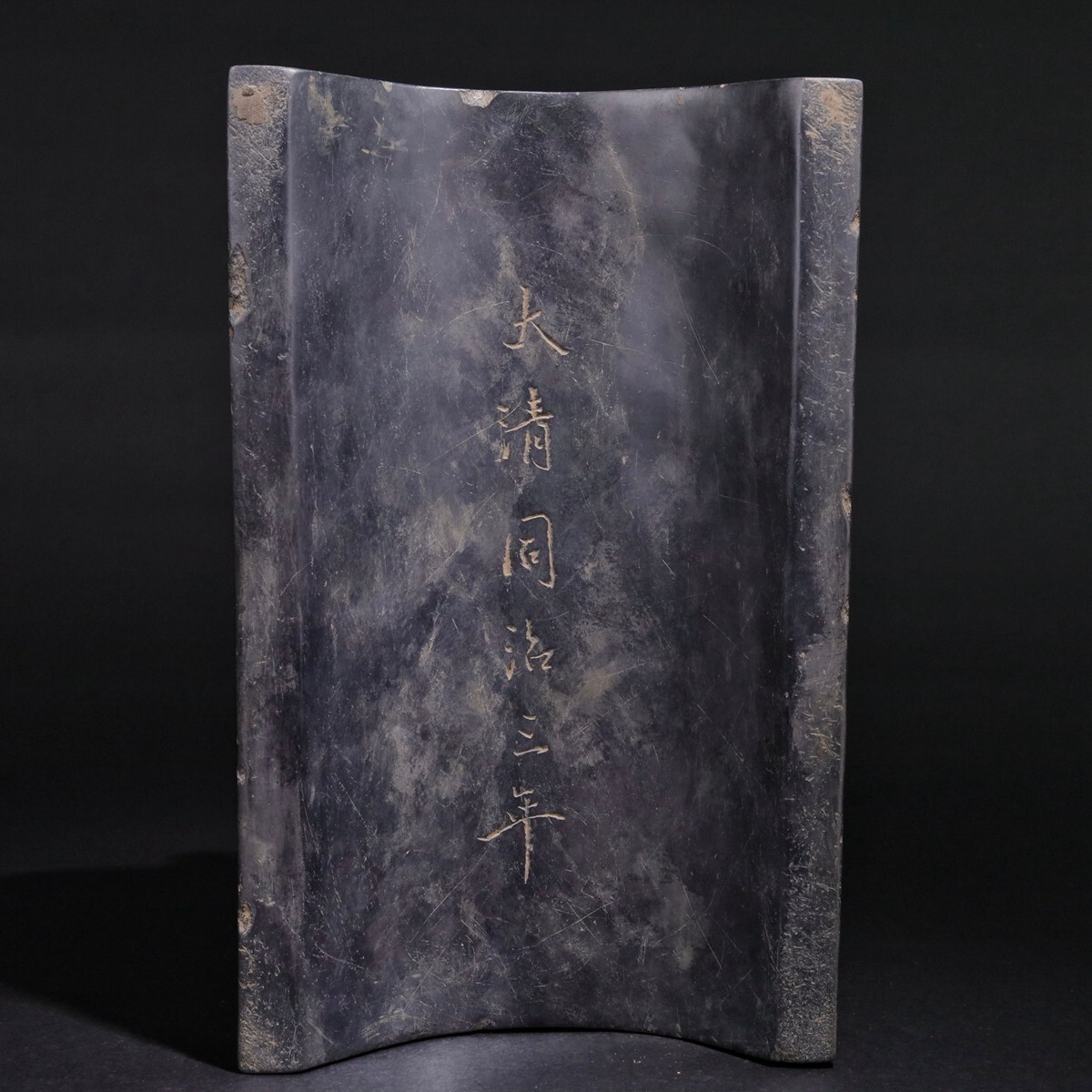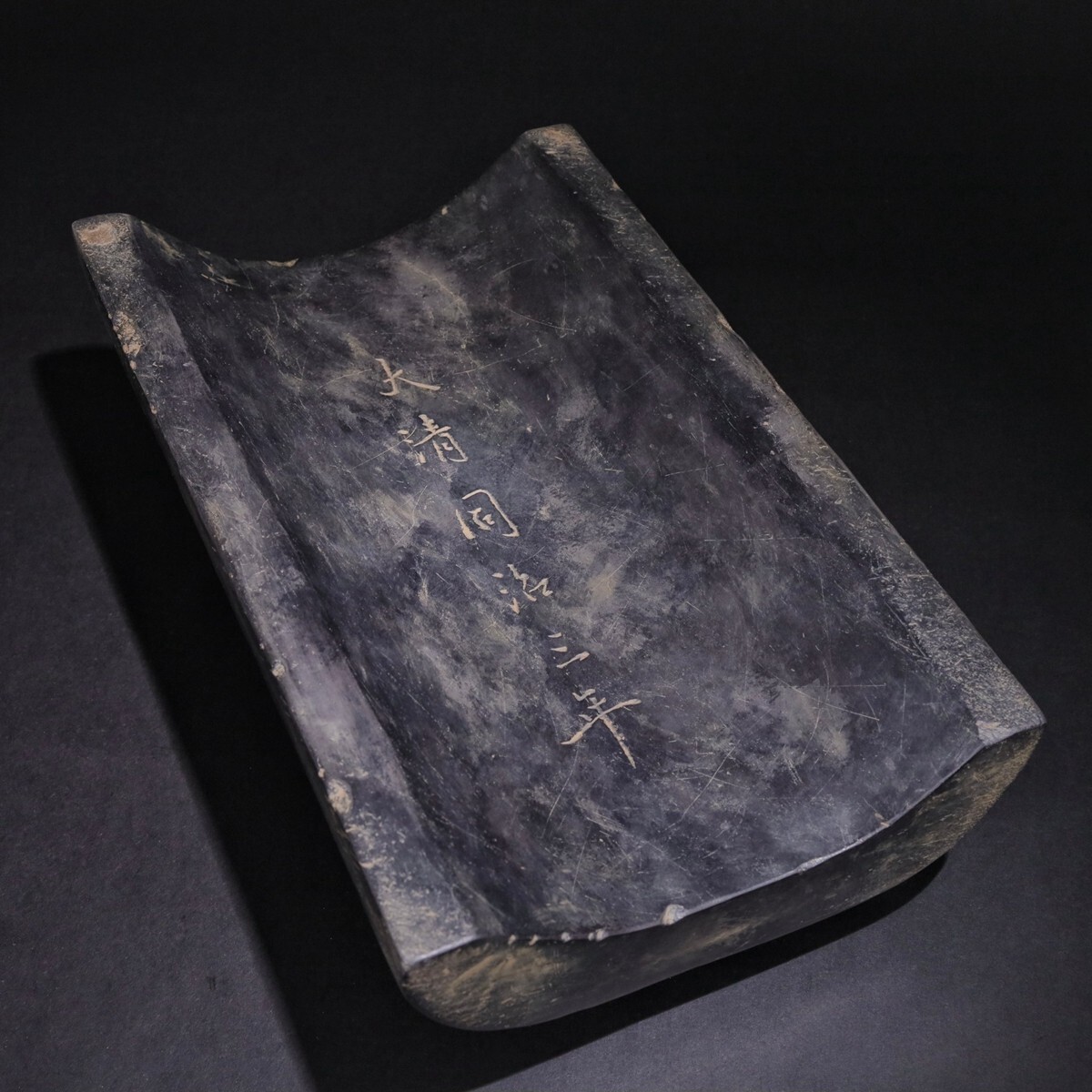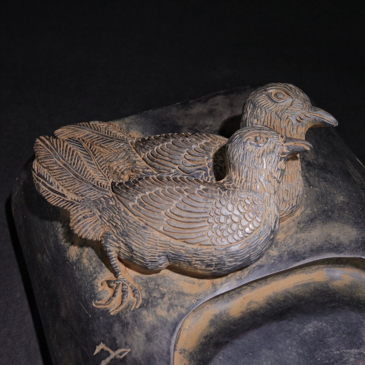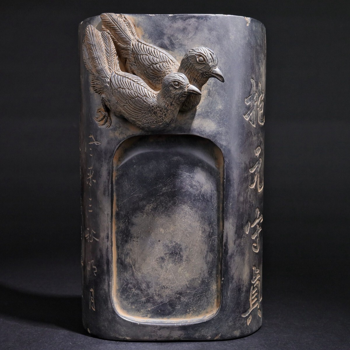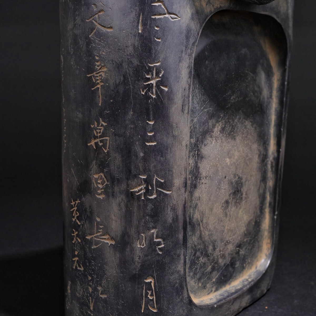 【瓏】老坑端石彫 双喜臨門文房端渓硯 黄大元銘 清時代 手彫り 文房四寶 書道具 中国古硯 古美術 蔵出