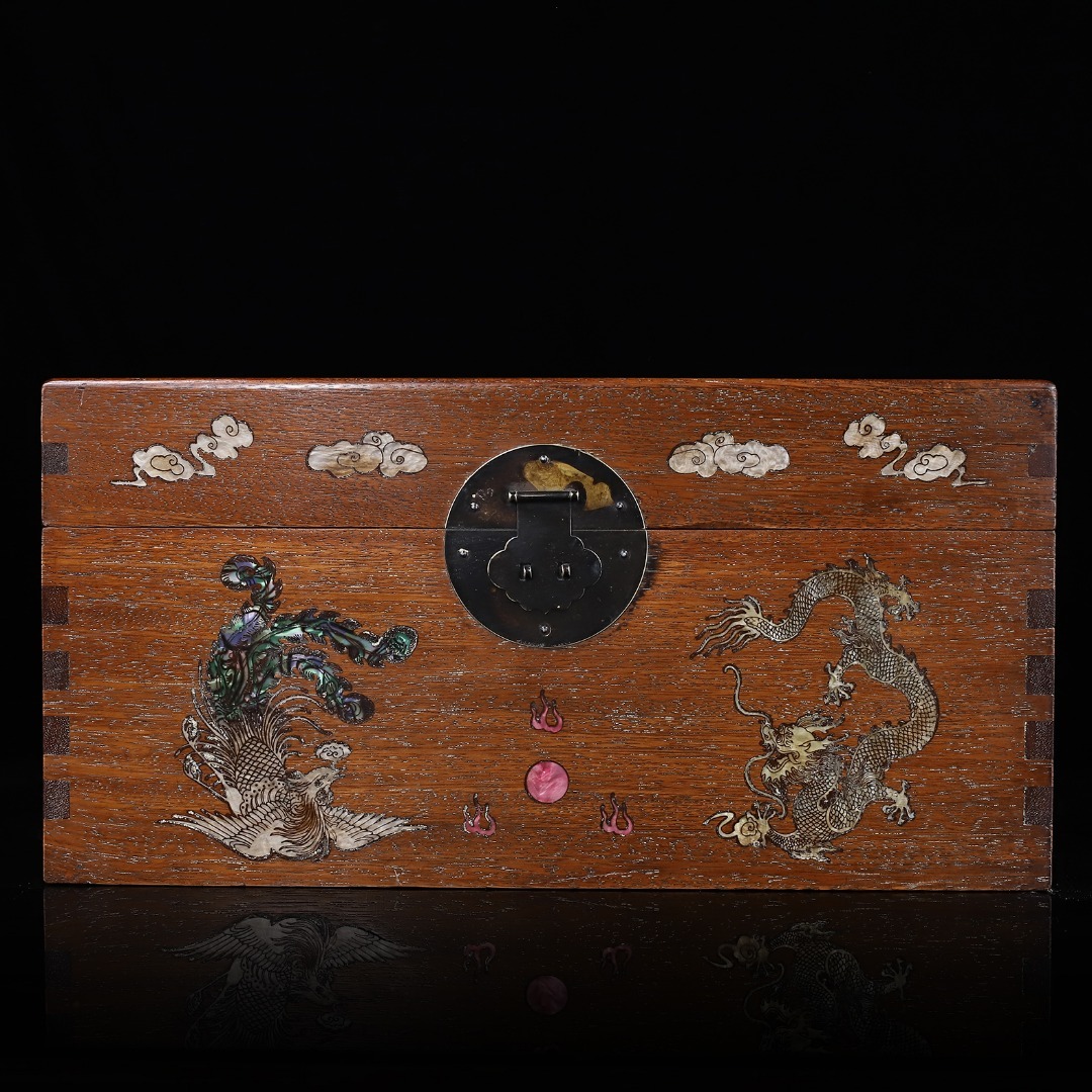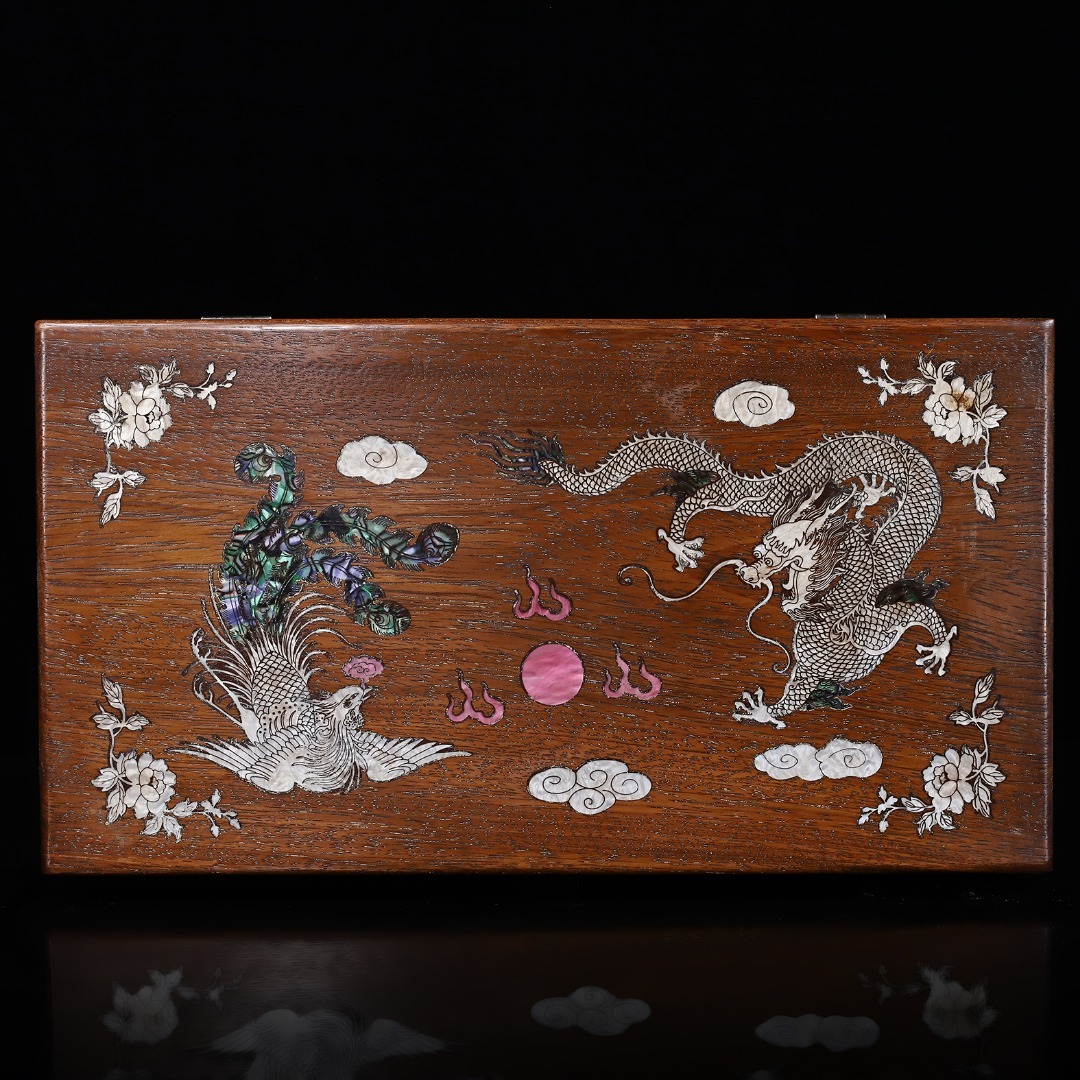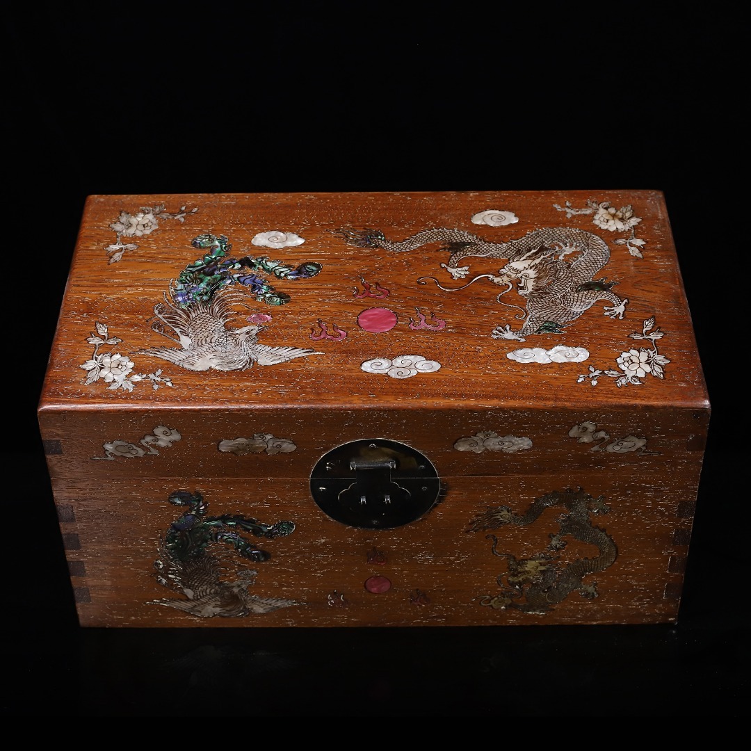 *珍品旧蔵* 清 花梨木嵌貝殼龍鳳箱子 茶道具 置物 擺件 賞物 極細工 唐物 中国古玩 工芸品 ZK0319