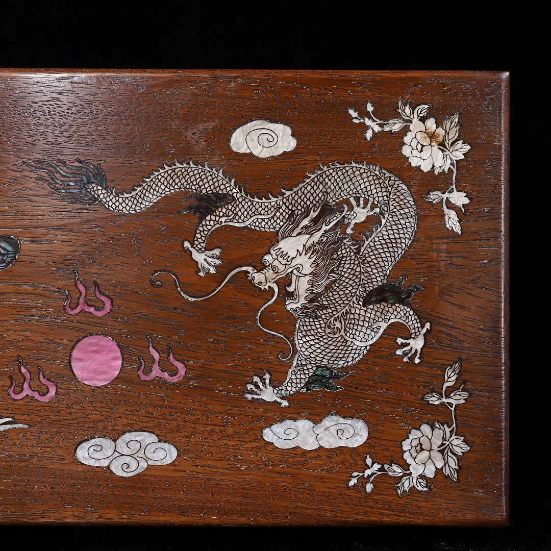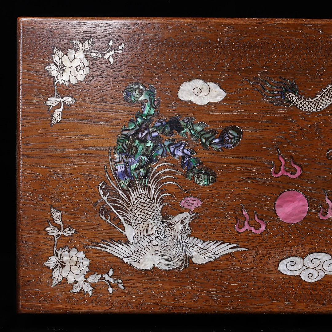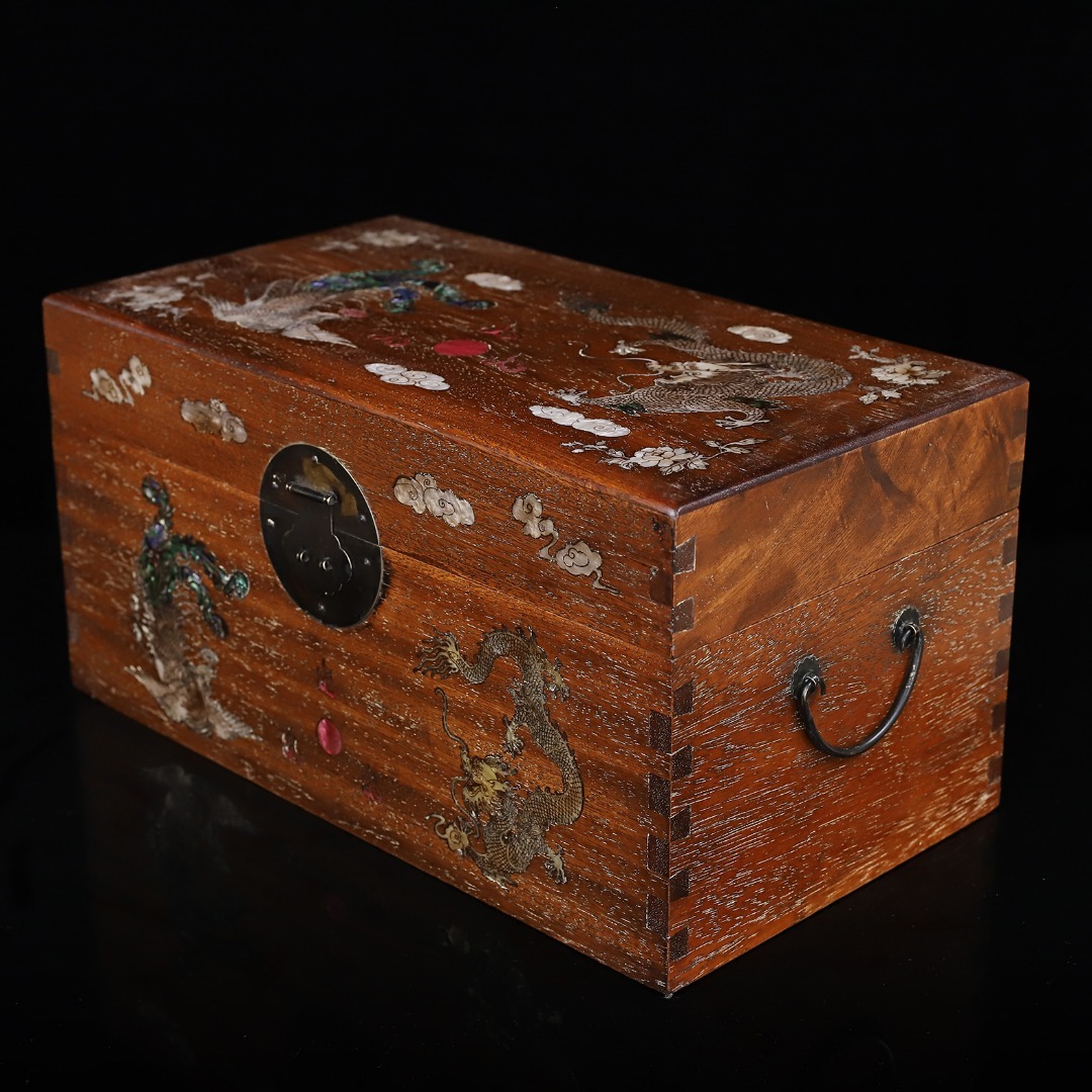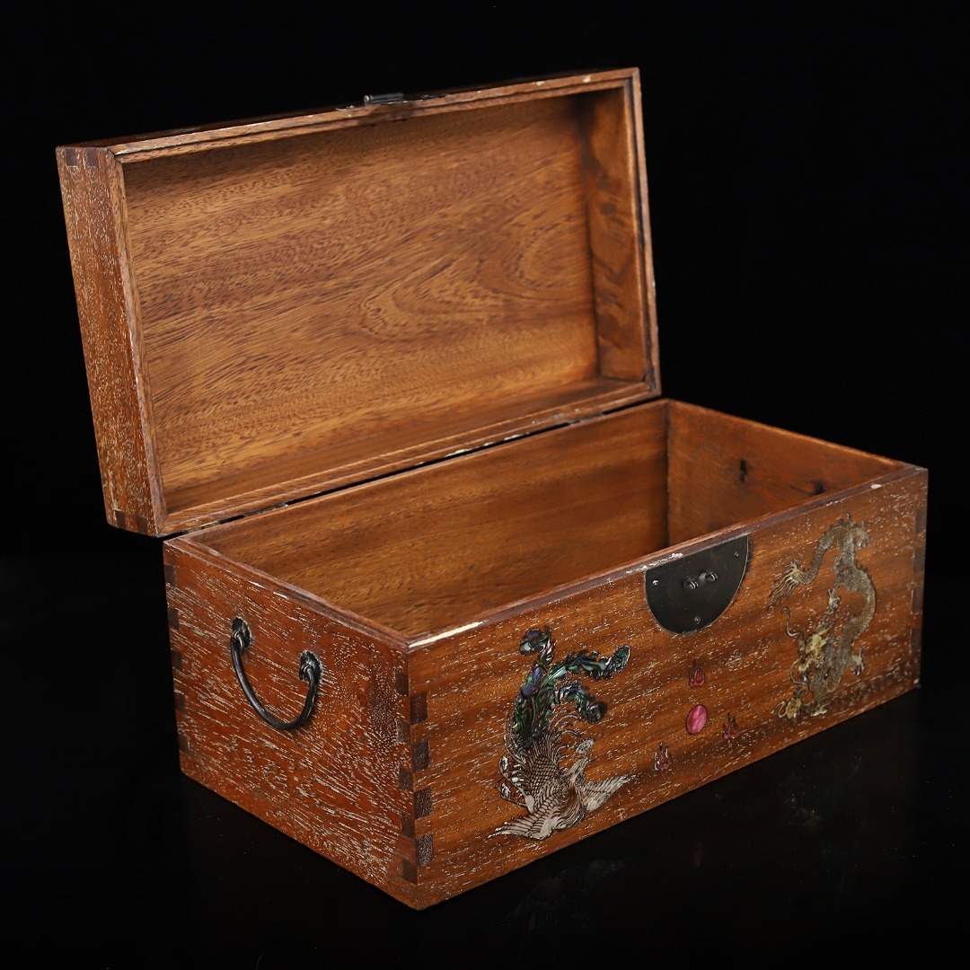 *珍品旧蔵* 清 花梨木嵌貝殼龍鳳箱子 茶道具 置物 擺件 賞物 極細工 唐物 中国古玩 工芸品 ZK0319