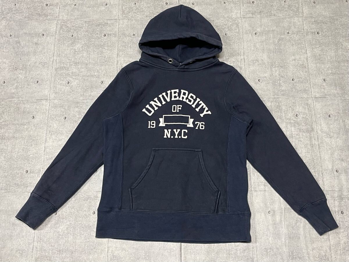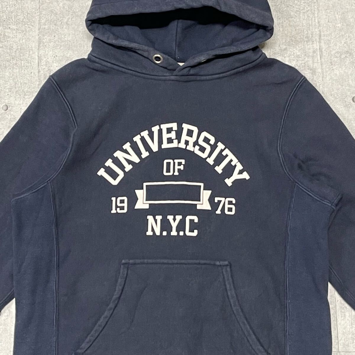 BEAMS パーカー カレッジロゴ フーディー フーデッド ビームス  リバースウィーブ同等の作りのしっかりしたフードスウェット YL1765 トレーナー UNIVERSITY N.Y.C1976 セレクトブランド 色褪せ フェード