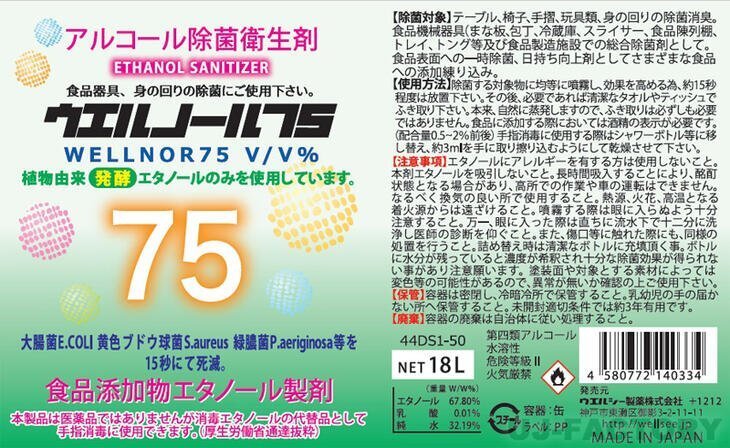 ★ ウエルノール 75/食品添加物エタノール製剤 ★