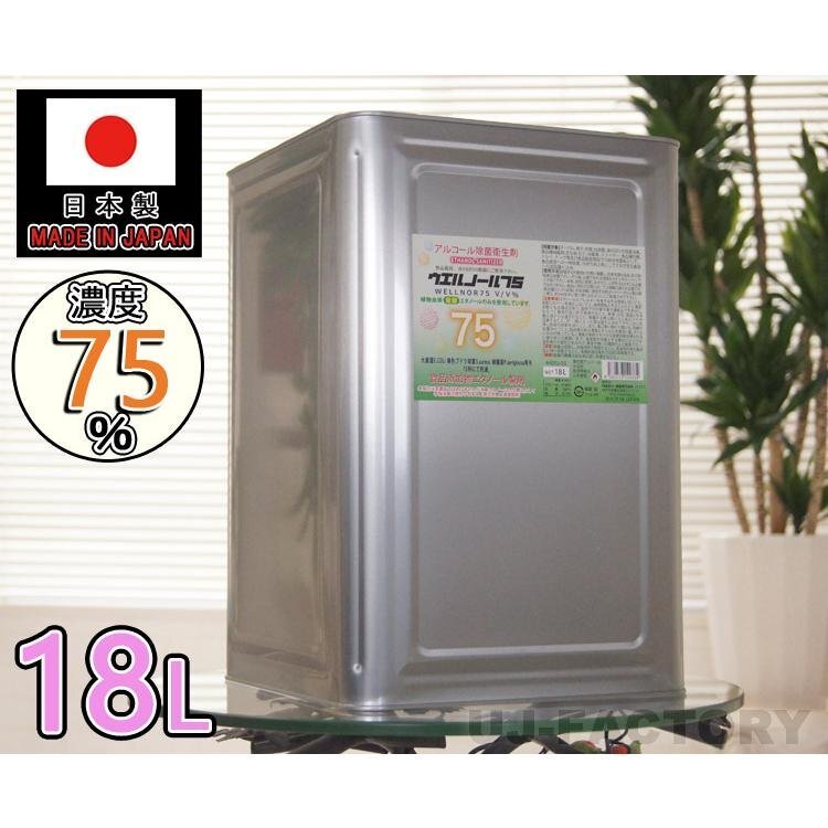 ★送料無料(地域限定)★日本製 ウエルノール75 18L(一斗缶)コック無し/ウエルシー製薬【1本】 除菌/抗菌 インフルエンザ 食中毒対策に!