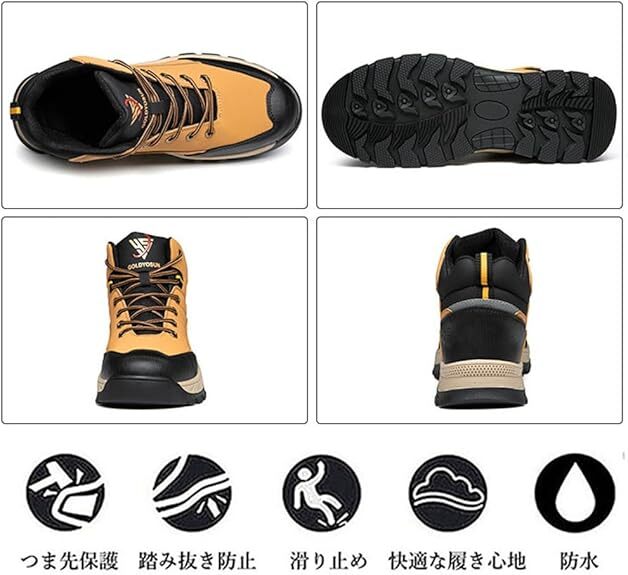 安全靴 ハイカット 防水 作業靴 メンズ 革 軽量 釘踏み抜き防止 鋼先芯入り 耐滑 耐摩耗 サイズ:27cm