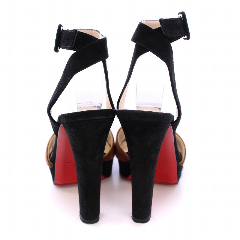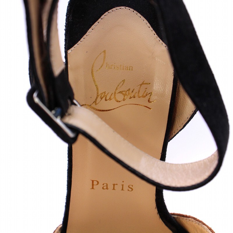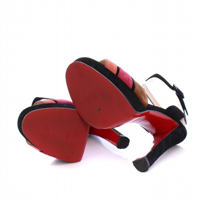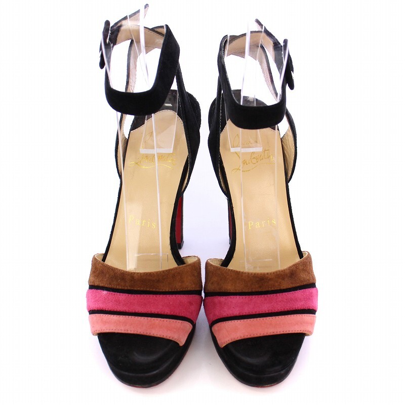 クリスチャンルブタン Christian louboutin サンダル ハイヒール スエード ライン シューズ 34 黒 ブラック マルチカラー レディース