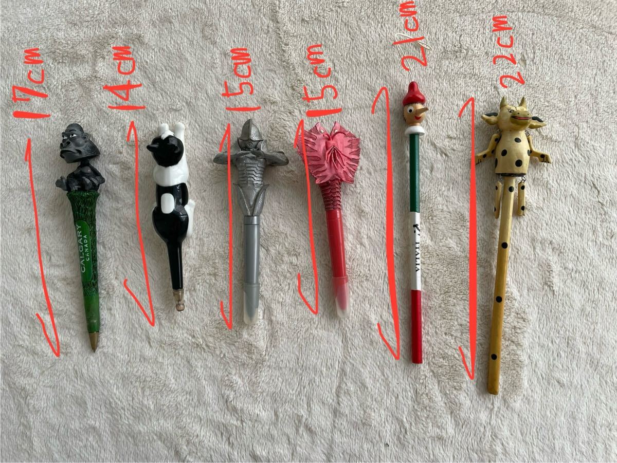 個性的なデザインのボールペン6本セットです。海外製やキャラクター系のものが含まれ、ユニークなコレクションとしてもおすすめです。