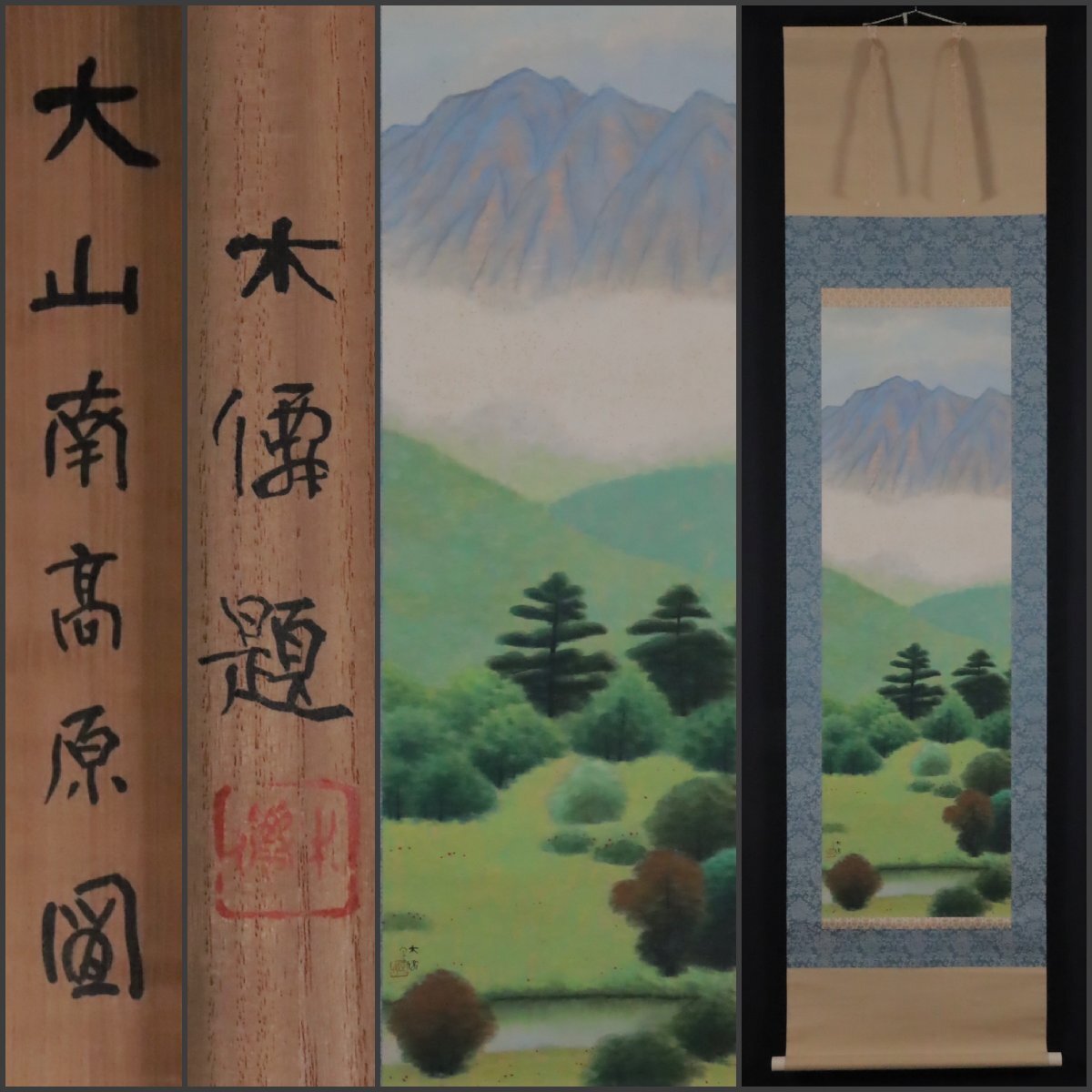 【模写】吉】12128 勝谷木僊 大山南高原図 共箱 鳥取県 伯耆町 米子市の人 西山翠嶂師事 茶掛け 茶道具 掛軸 掛け軸 骨董品