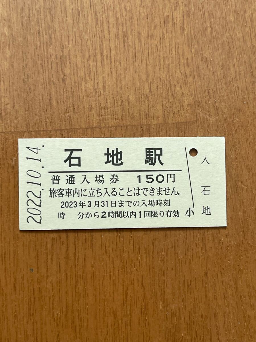 JR東日本越後線石地駅のB型硬券入場券です。(2022年)
