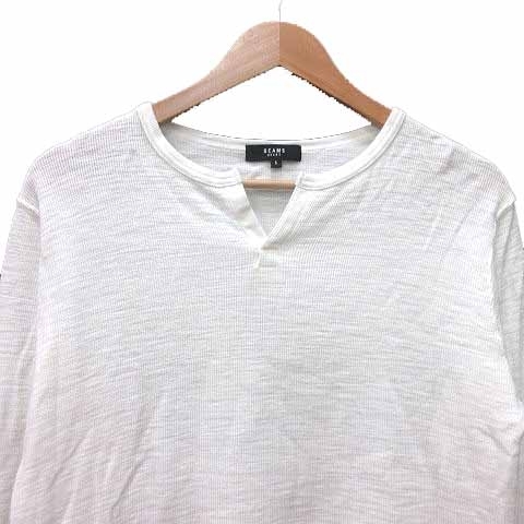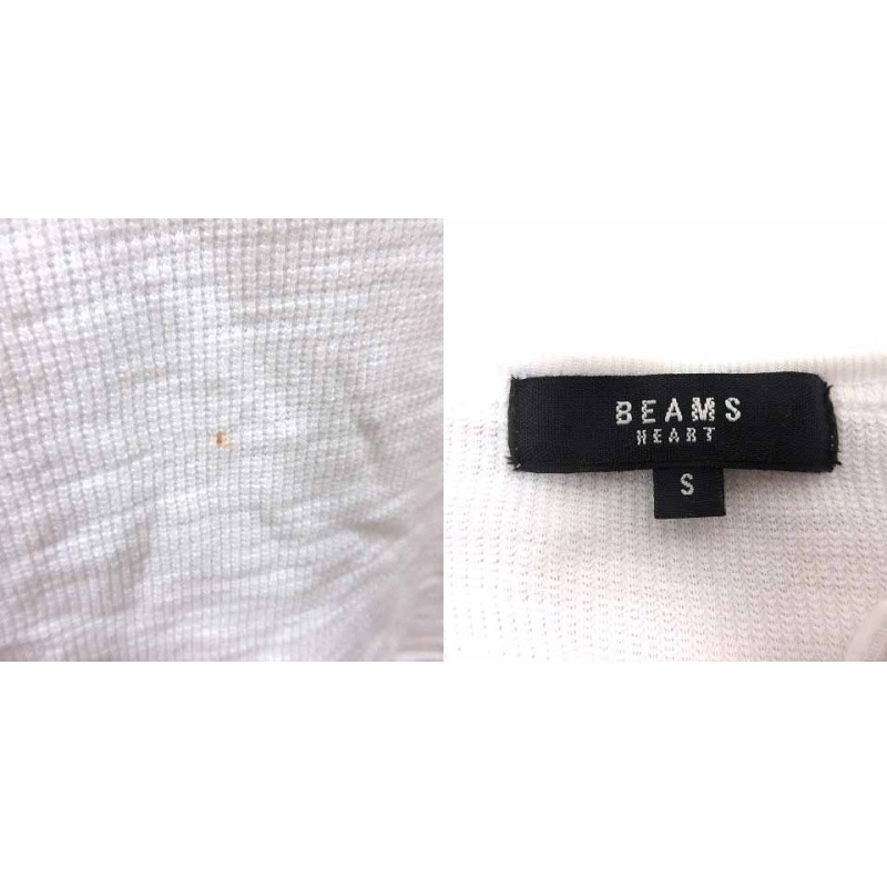 ビームスハート BEAMS HEART Tシャツ カットソー キーネック 長袖 S 白 ホワイト /YK メンズ