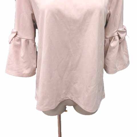 アールピーエス r.p.s カットソー リボン 七分袖 M ピンクベージュ /YK レディース