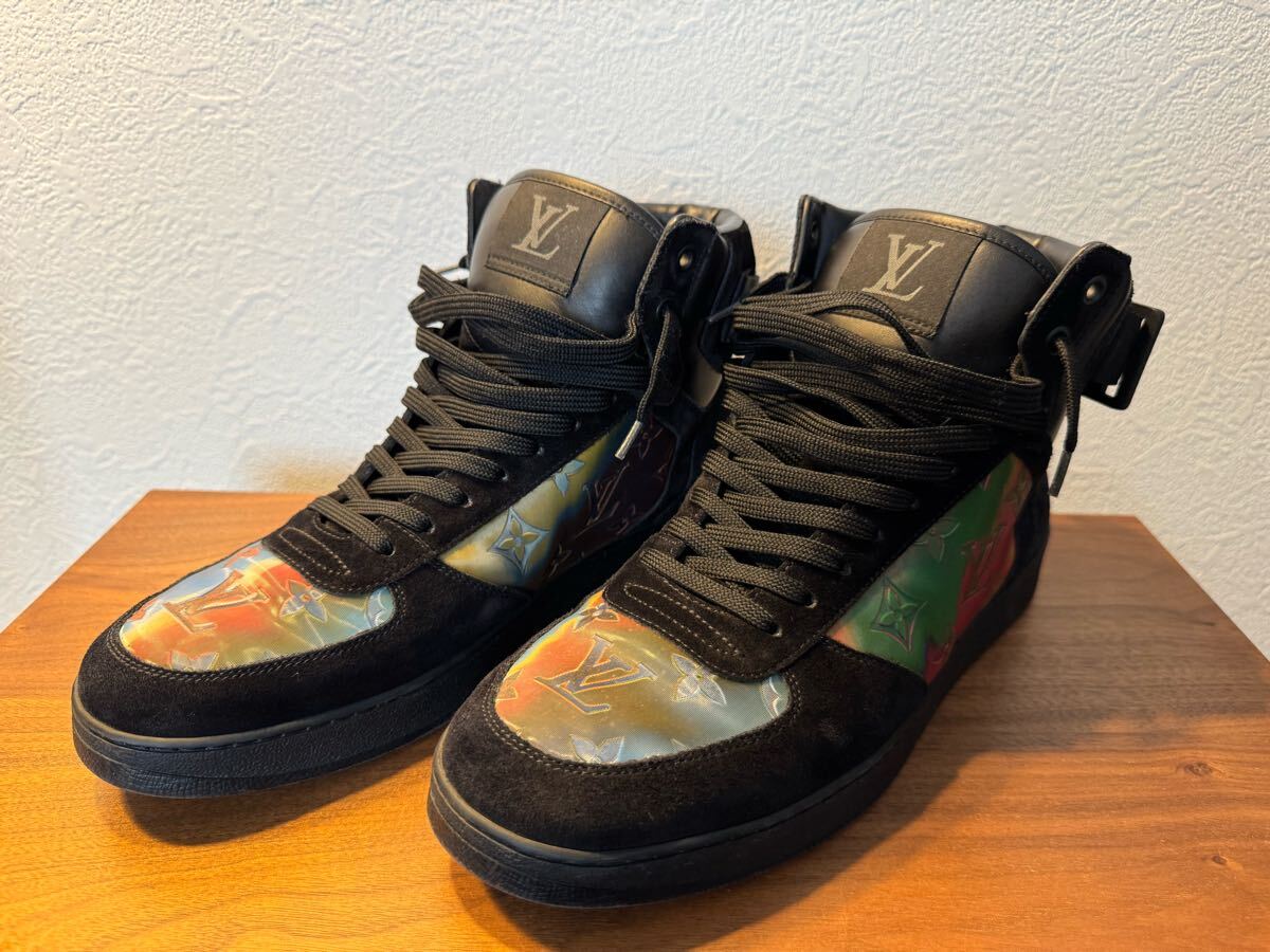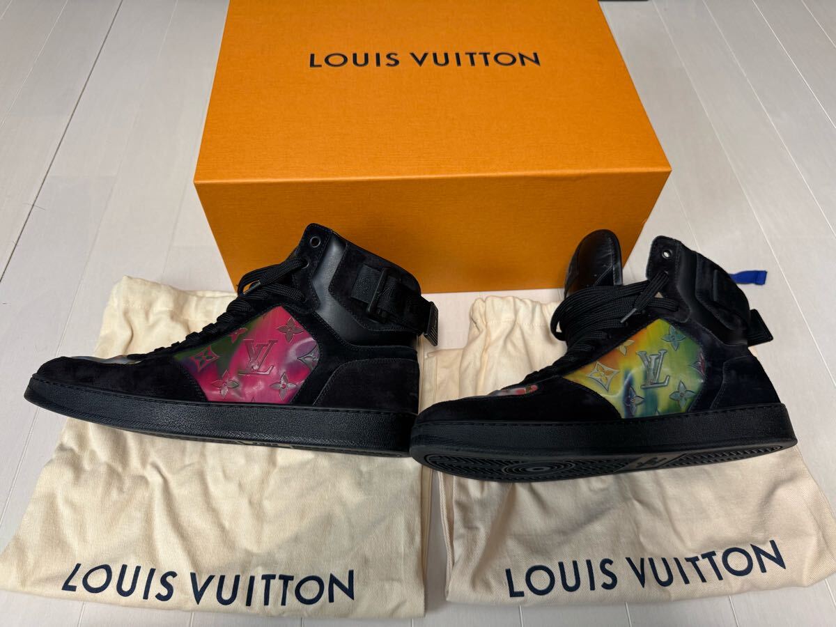希少 美品 LOUIS VUITTON ルイヴィトン リヴォリライン エンボス プリズム モノグラム ハイカット メンズ スニーカー シューズ 靴 7 27cm