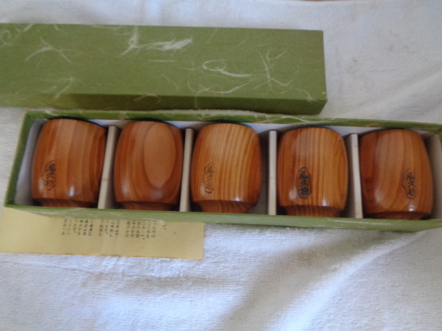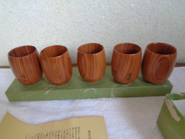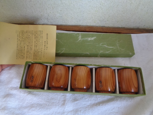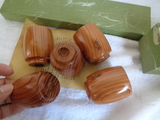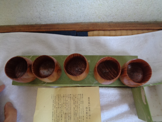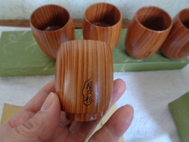 木工芸 屋久杉/鹿児島 屋久杉-猪口 5個セット-/酒器-ぐいみ・猪口-箱入5個セット-/箱入未使用美品-長期保管品/
