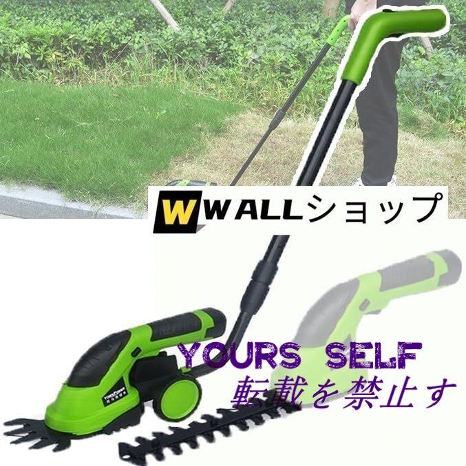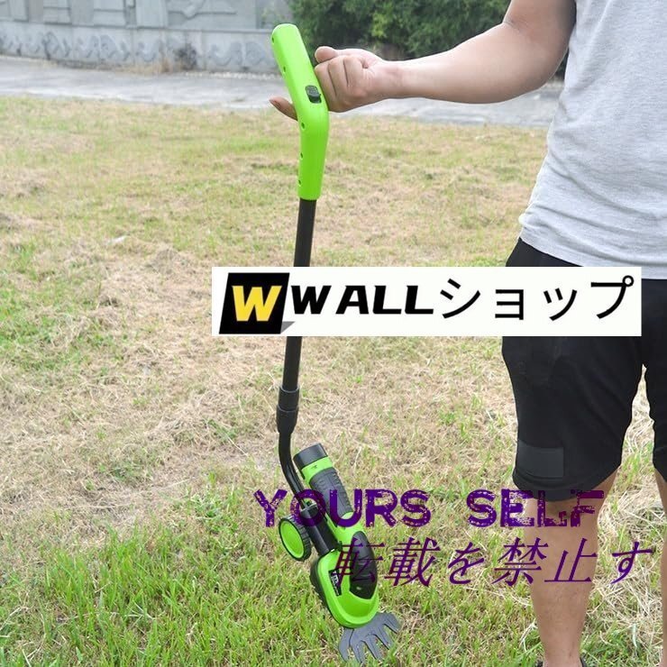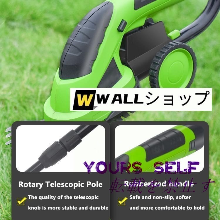 伸縮ロッド付き電動芝刈り機(65-100cm)、リチウム電動芝刈り機、刃2組草刈刃+剪定ナイフ