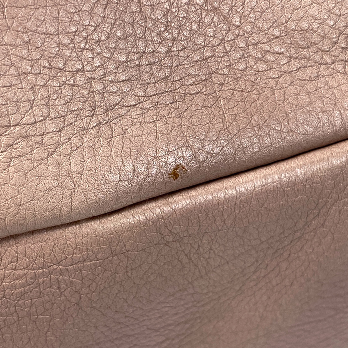 | 《全体》型崩れ、生活臭、スレ、キズ、シワ、汚れ、色褪せ、色ムラ 《内側》毛羽立ち 《ハンドル》へたれ、ひび割れ、押し跡 《ショルダーストラップ》へたれ 《金具》くすみ、小キズ 《フチ》剥がれ 《ファスナーエンドのレザー》変色、シミ ファスナーの動きが固めです。 保存袋に劣化あり。 |