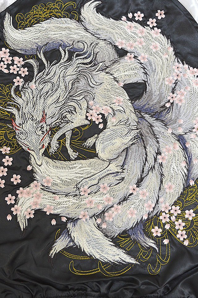 刺繍に定評のある古舗ブランド、華鳥風月の姉妹ブランド「朧」から「九尾スカジャン(9022813)」のご紹介です! カジュアルなポリエステル生地を使用し、気軽にお楽しみ頂くことの出来るスカジャンを製作しました。 今回、モチーフの主役に採用されたのは、近年人気を博している【九尾】柄。 1枚持っているだけでずっと使えるアイテムです。 | ||||||||||||||||||||