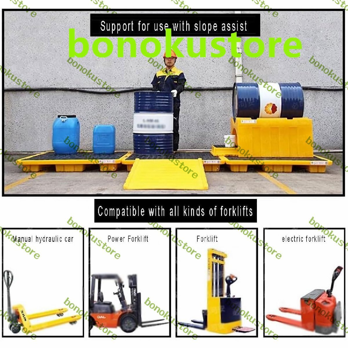 シングルドラムスピルパレット、40L角スピルプラットフォーム、静的荷重500kg、動的荷重300kg、キッチン、工場、研究室、倉庫、物流用