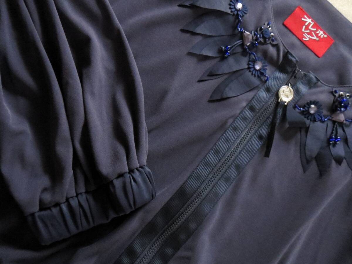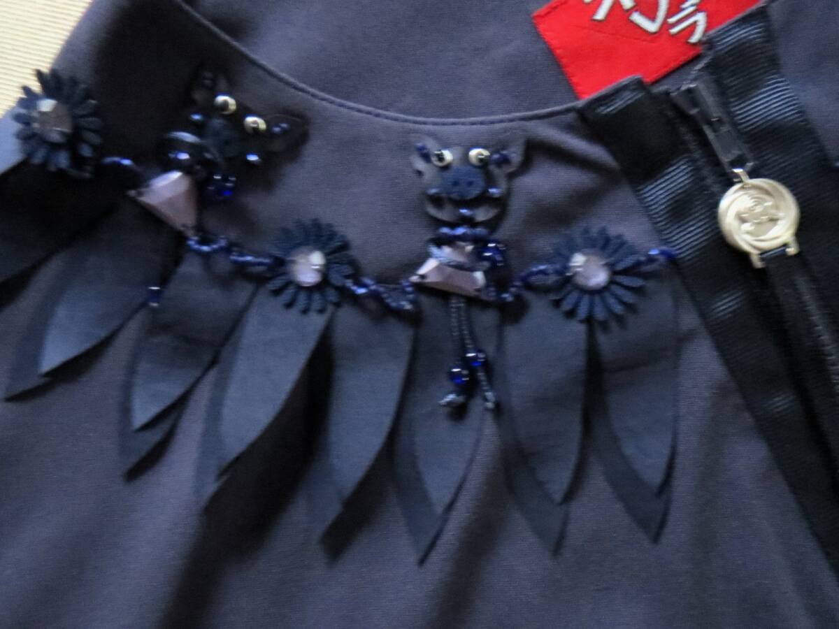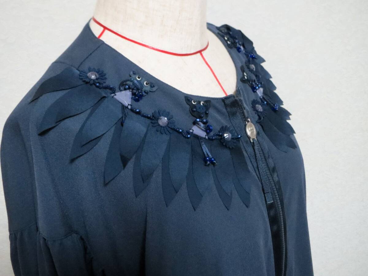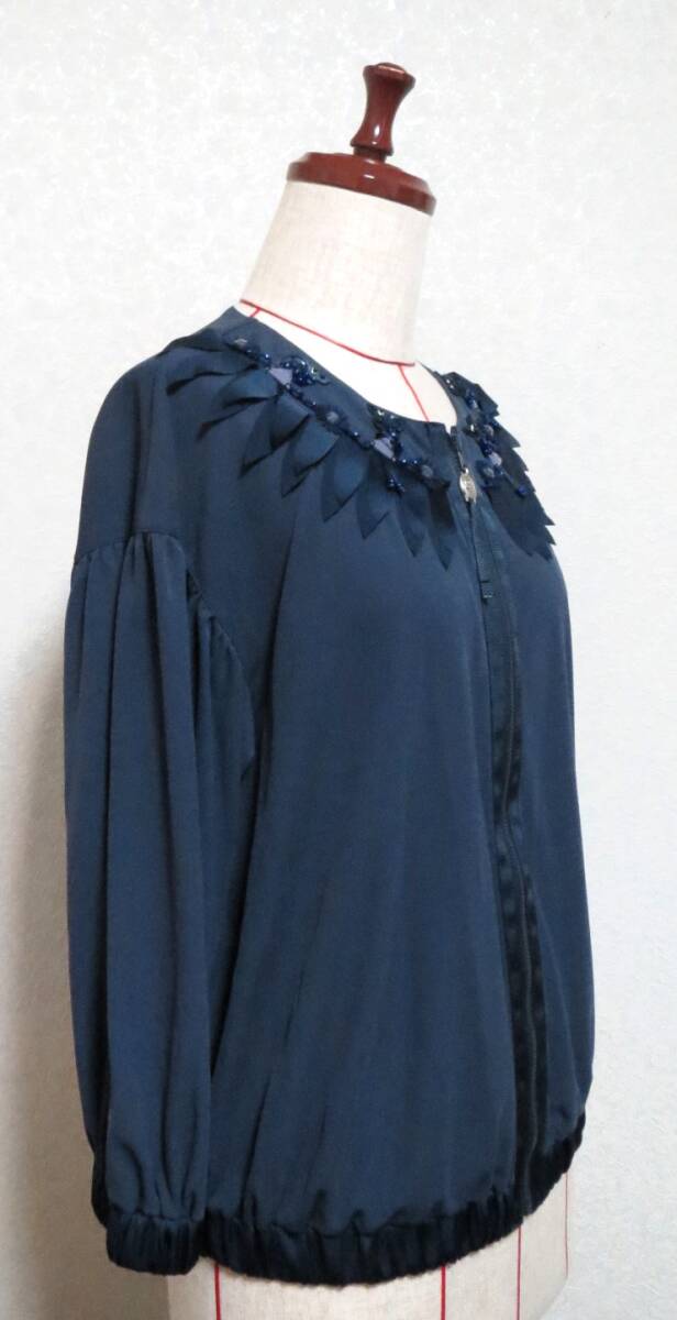 614★新品★セール★アルベロベロ ALBEROBELLO★ぶたさん★ビーズ刺繍★紺色★ブラウスにもブルゾンにも★ストレッチ素材★