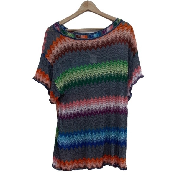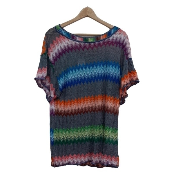 ミッソーニ MISSONI 半袖セーター/ニット サイズ40 M - グレー×オレンジ×マルチ レディース ボーダー 美品 トップス