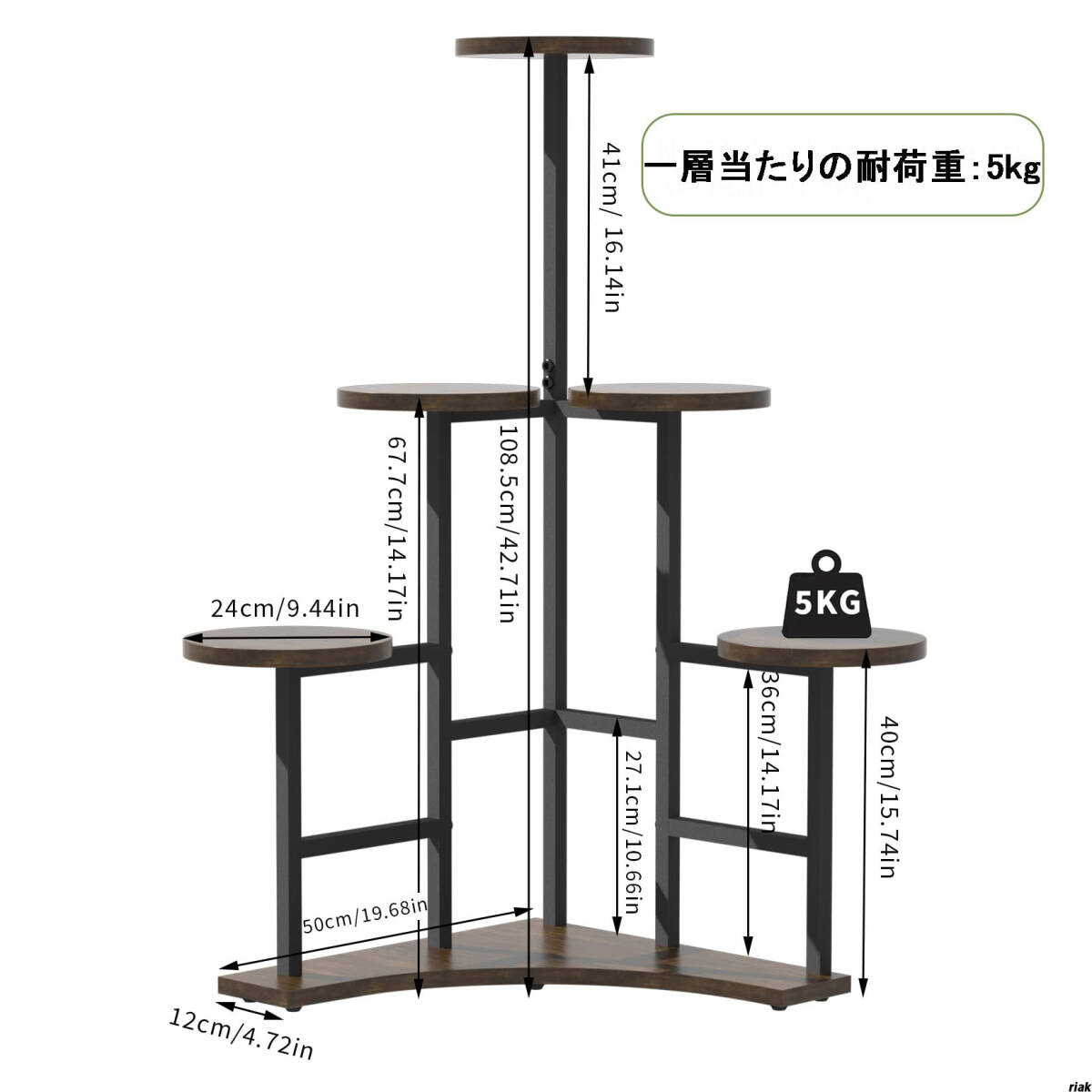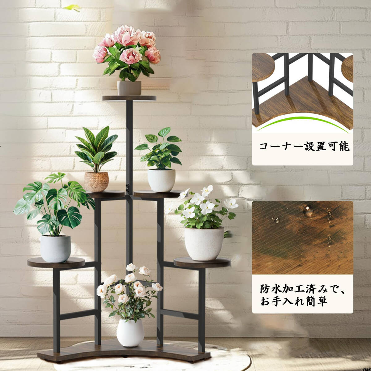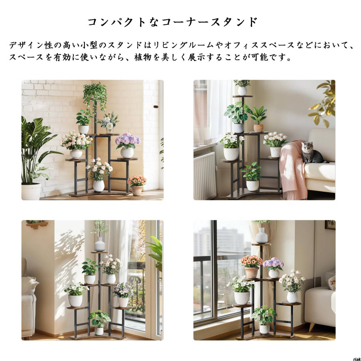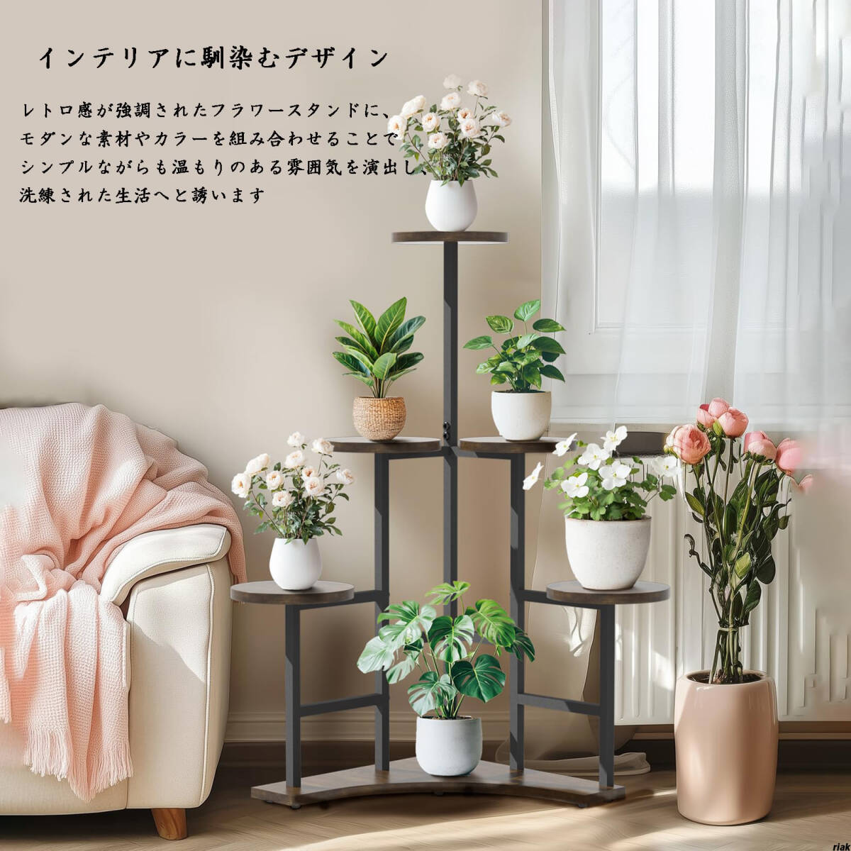 このフラワースタンドは、室内や屋外で使用できるデザイン性に優れた植物展示ラックです。