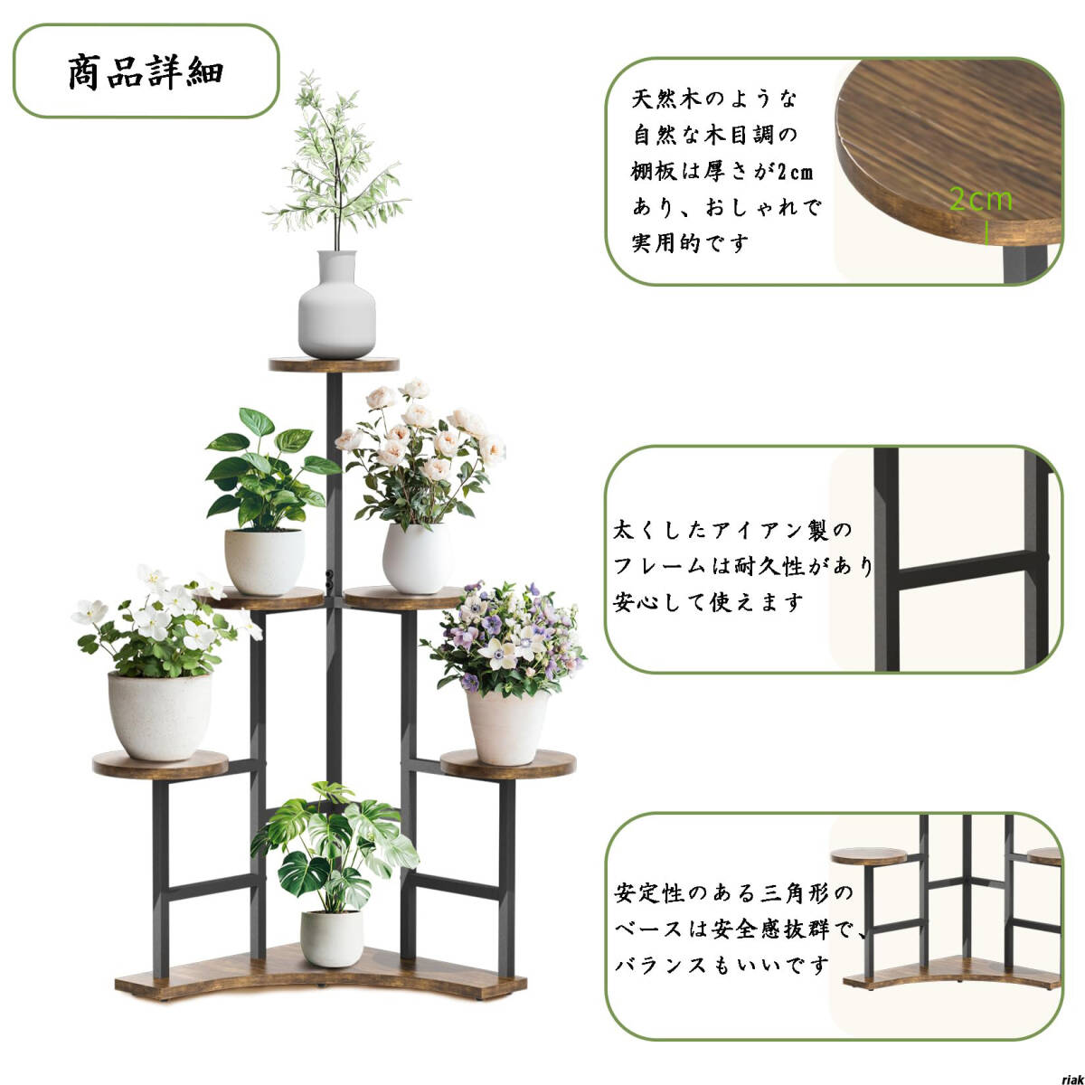 三角形の省スペース設計が特徴で、限られた空間でも効率的に植物を飾ることができ、インテリアとしても