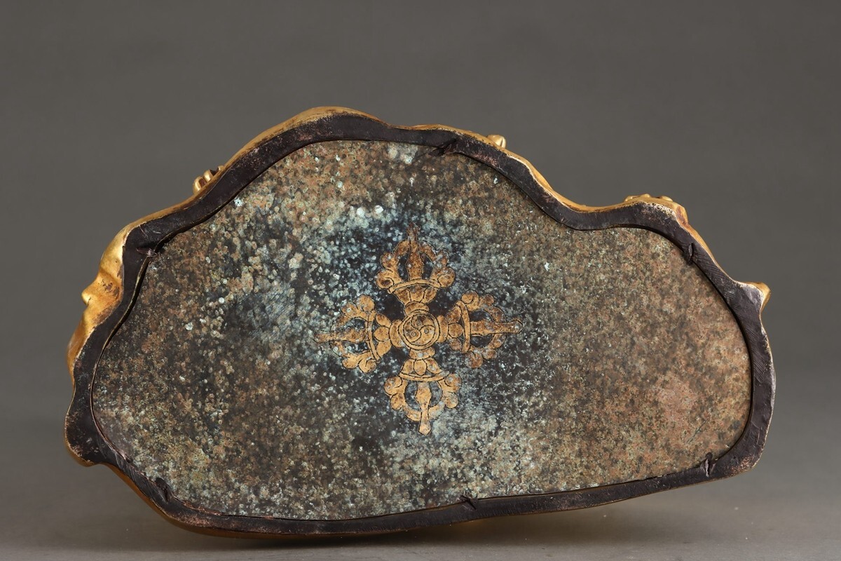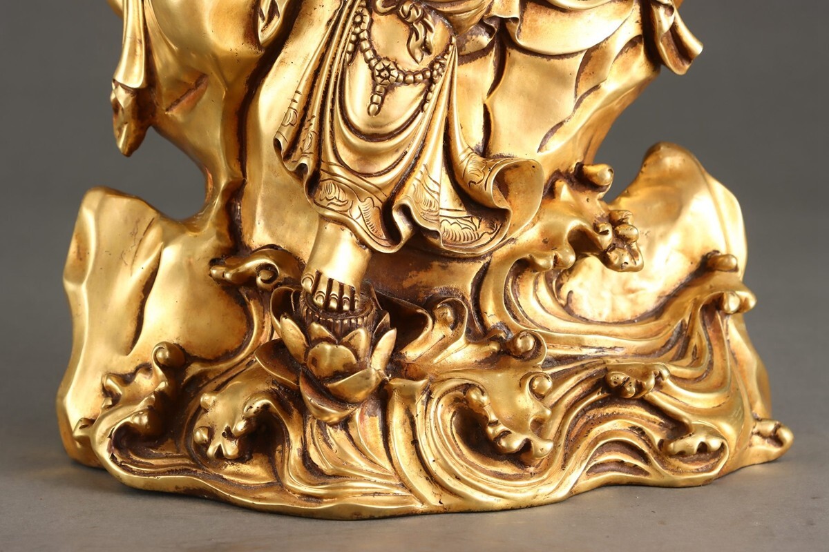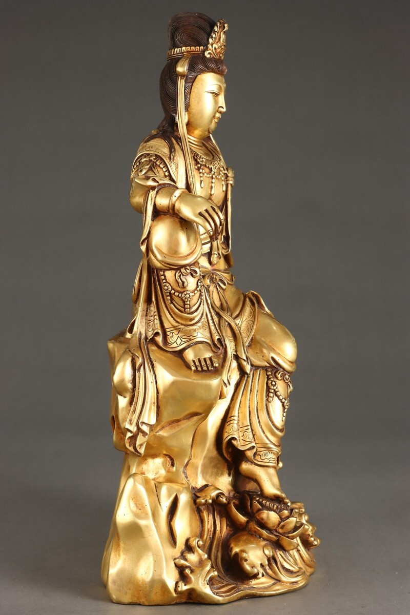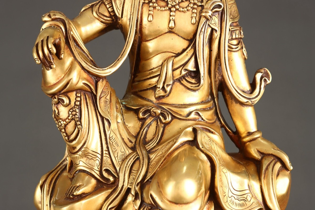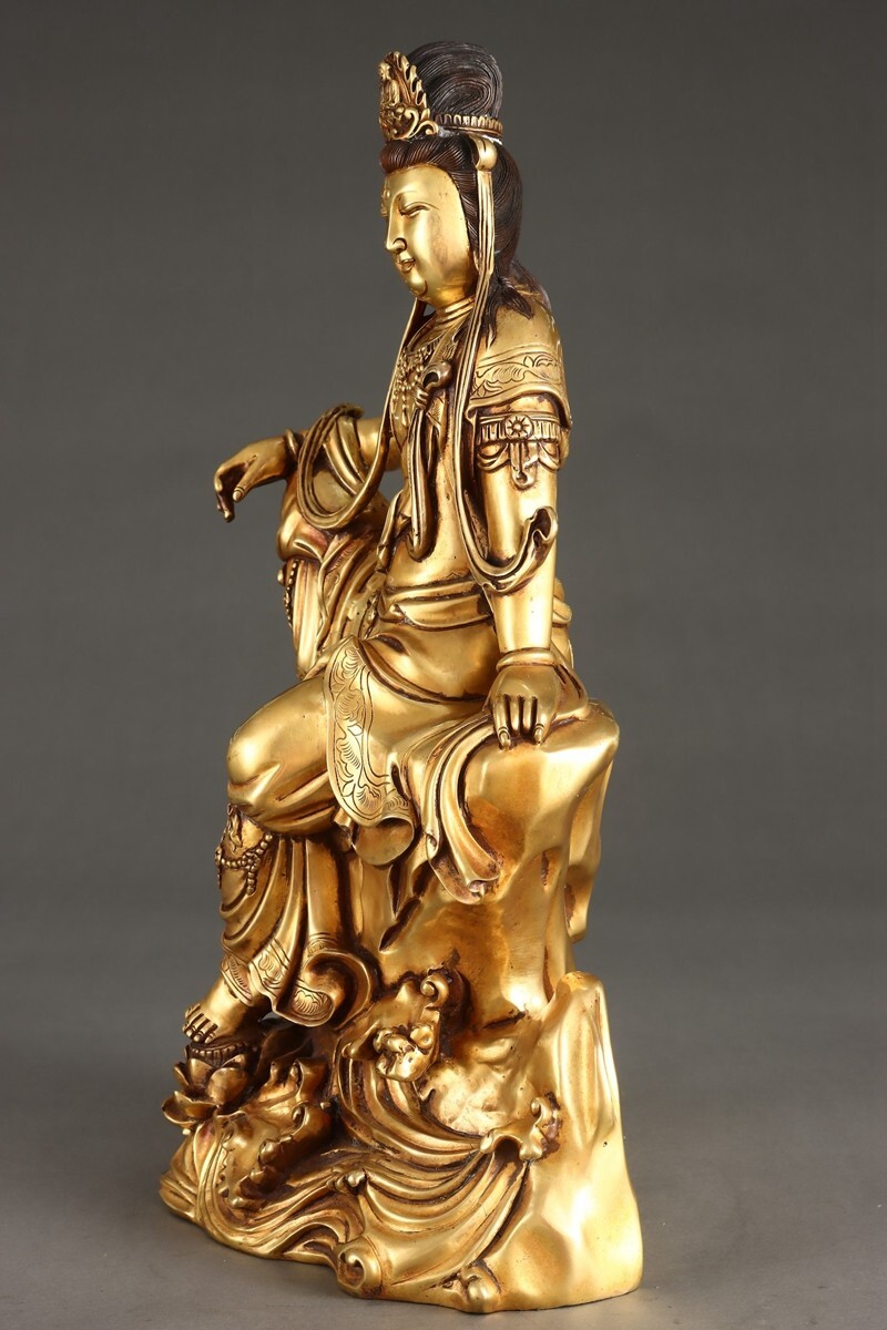 明代 大明永楽年施款 金水厚重 古銅彫 塗金水月観音坐像【仁】古置物擺件 銅仏像 仏教文化 古美術 蔵出