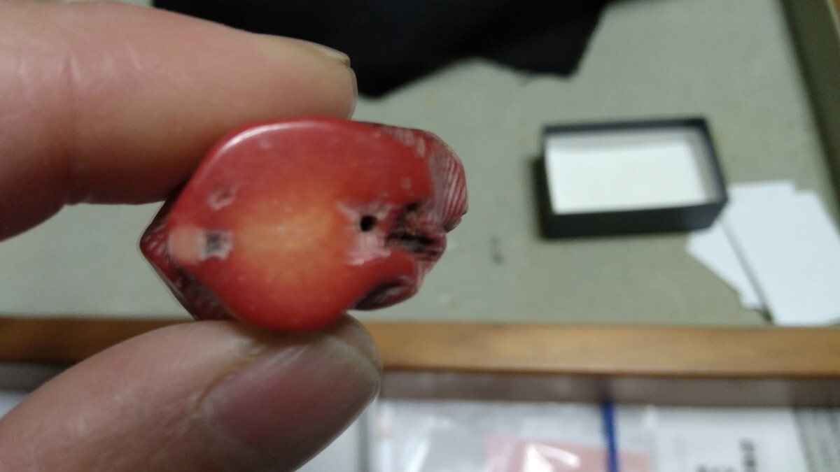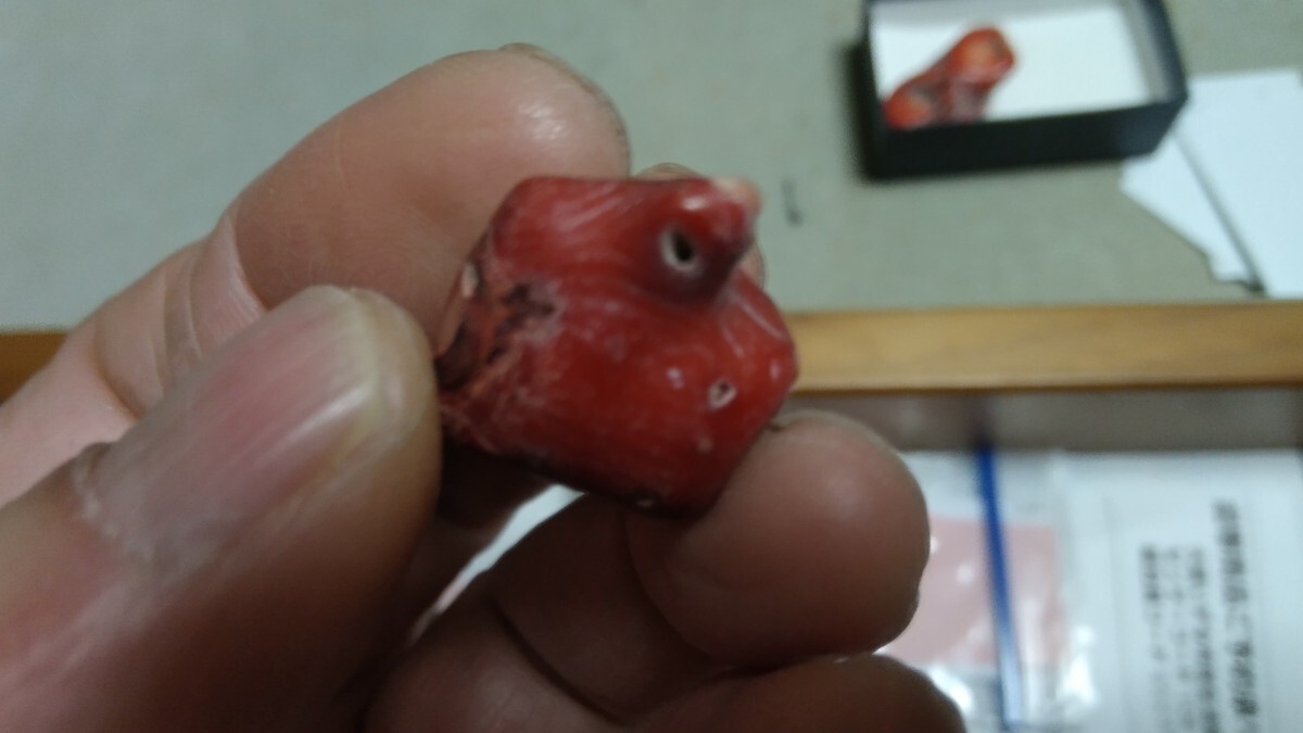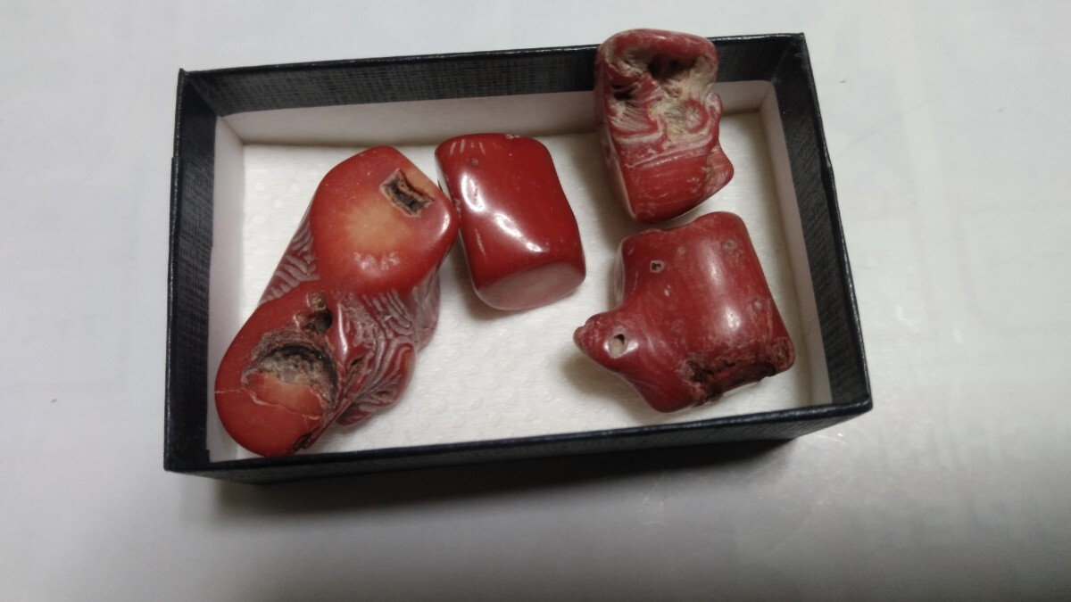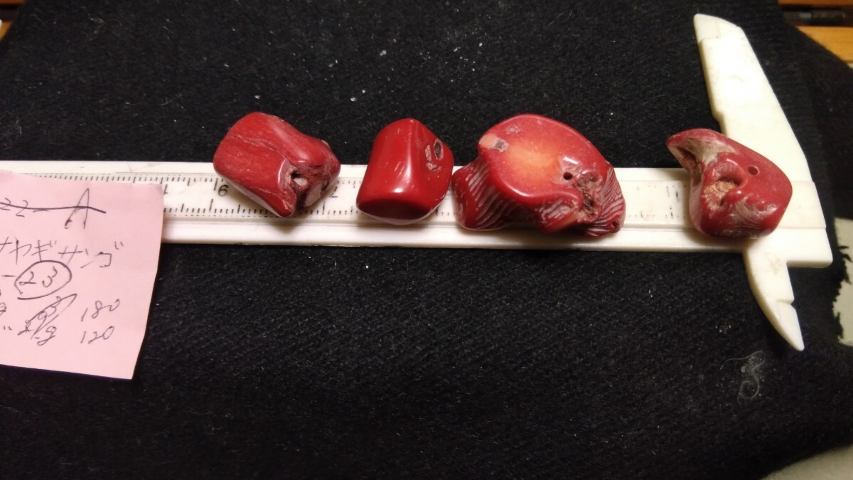 4個23.9g真っ赤なサンゴで穴があります。二次流通品のため、産地、詳細不明です