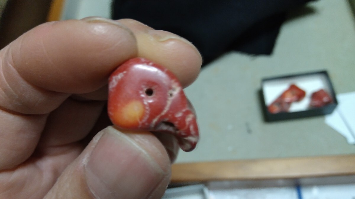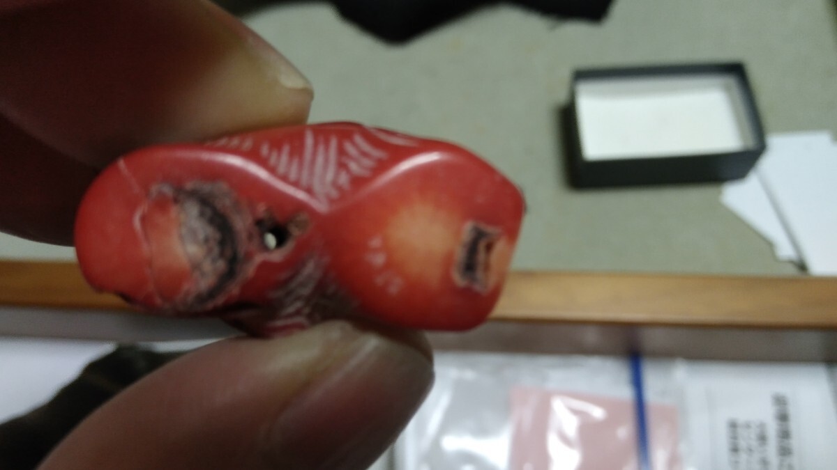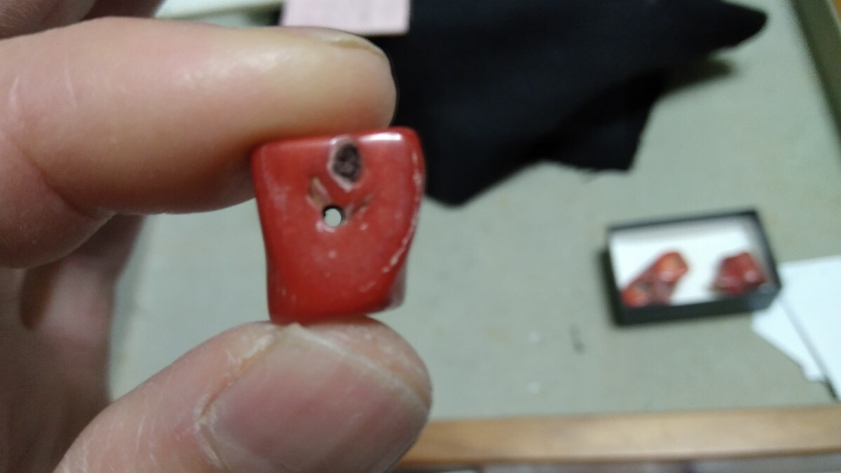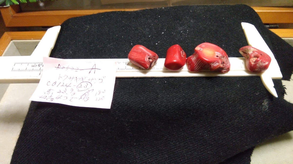 4個23.9g真っ赤なサンゴで穴があります。二次流通品のため、産地、詳細不明です