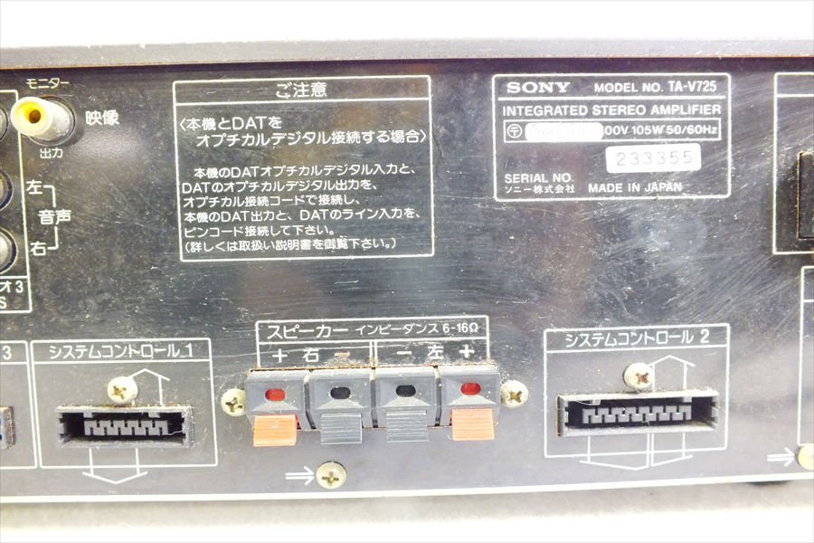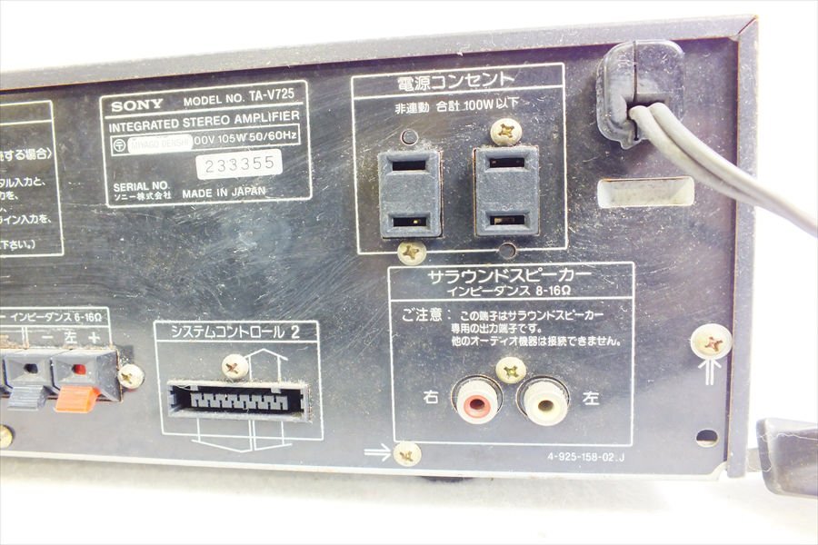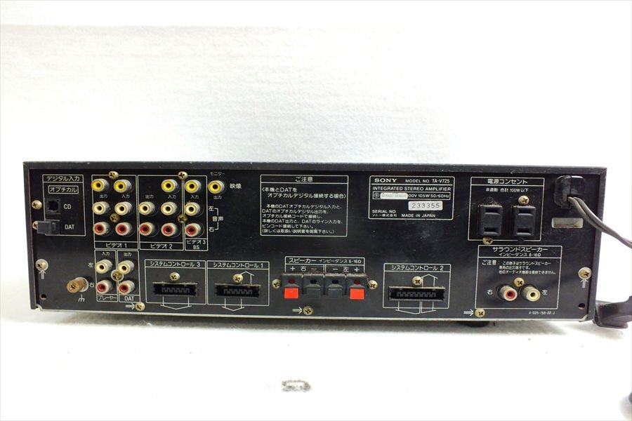 | ◆商品◆ メーカー---------SONY ソニー 型式-------------TA-V725 付属品-----------画像に写っているものがすべてになります。 ◆外装ランク◆ 【 D 】 ◆状態◆ 中古品の為キズや汚れなどの使用感はご容赦ください。 1 通電します 外装にキズ汚れ錆有り 音出し出来ませんでした。 通電はしましたが、動作しませんでした。 現状品での出品となります。 調整やメンテナンスが必要となります。 【重要】配送送料と送料に送料が0円と表示される場合がございますが、出品画面に記載の送料が落札後にご精算されます。 | |||||||||||||||||
