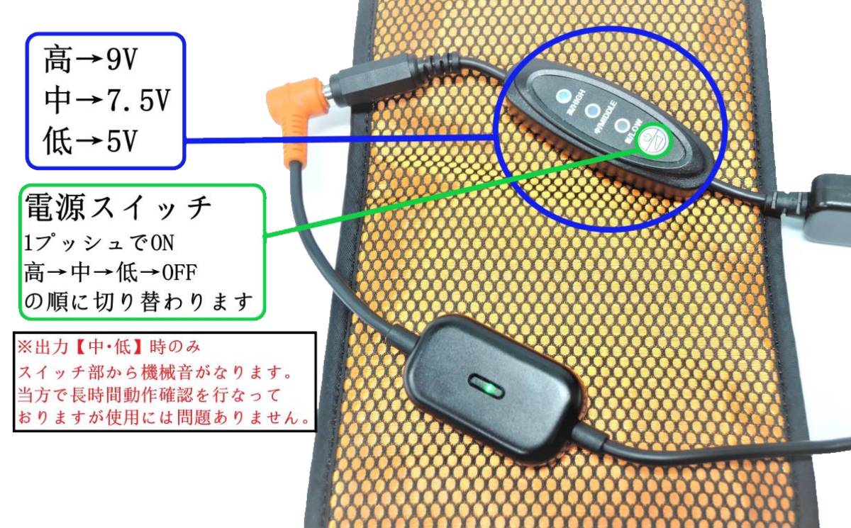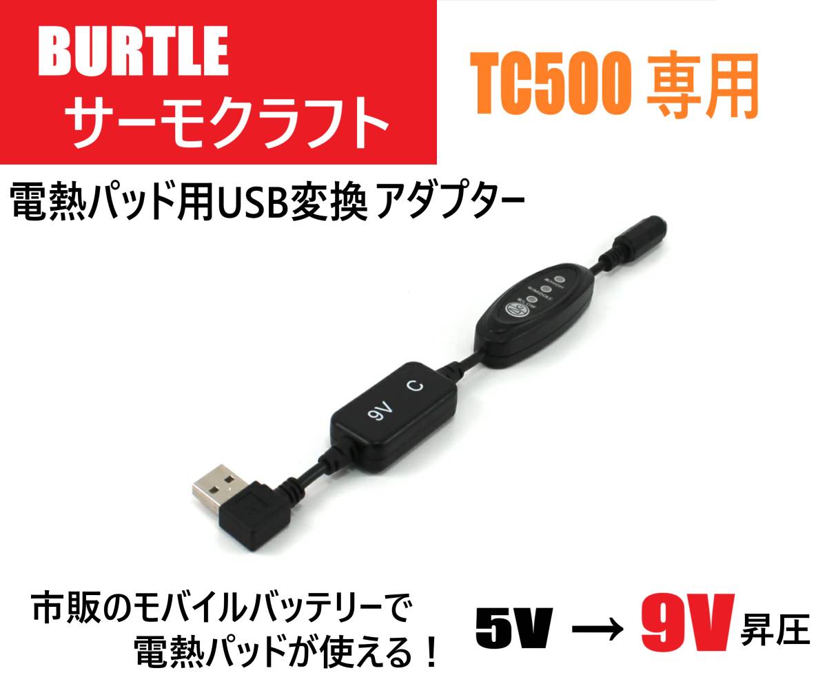 バートル サーモクラフト 電熱パッド TC500 USB変換アダプター 9V昇圧 ヒーターベスト 電熱ベスト USB変換ケーブル 【9V-Cスイッチ】 ②