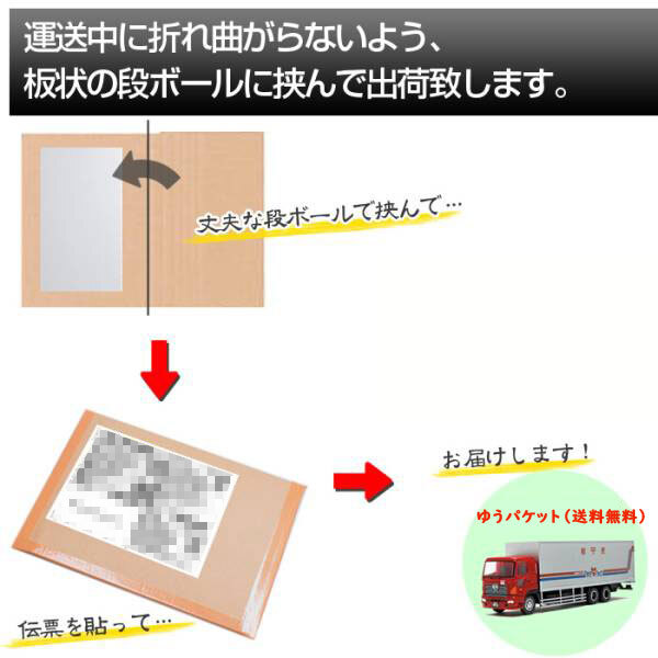 輸送時にフィルムが折れ曲がらないよう、無地の段ボールで挟んでお送り致します。