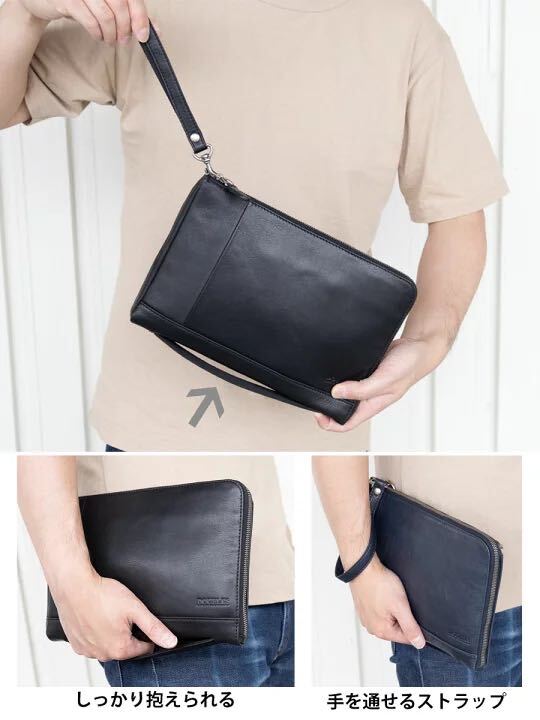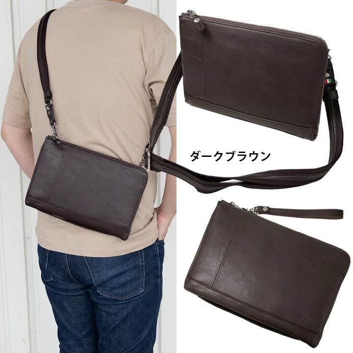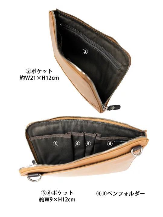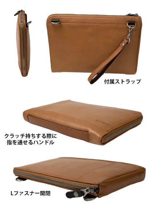 ●ショルダーベルトとハンドストラップが2種類付属し、底部に手を通すハンドルが付いた3WAYバッグです。カジュアルシーンはもちろんクラッチ ポーチになるのでフォーマルシーン ビジネスシーンでも活躍します。
