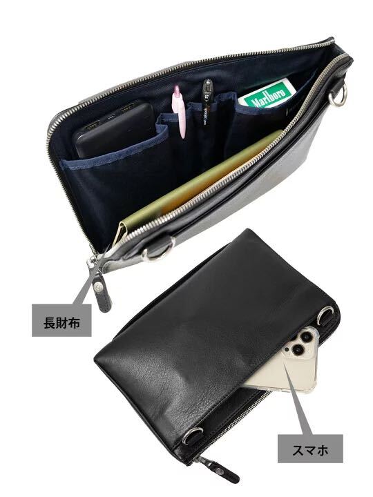 ●貴重品のみを入れる薄マチタイプのLファスナー開閉。しっかりとした型で、落ち着いたイタリアンレザーなのでかっこよくスマートにお持ちいただけます。