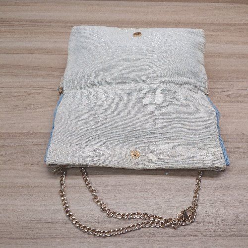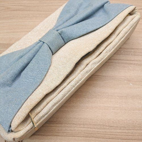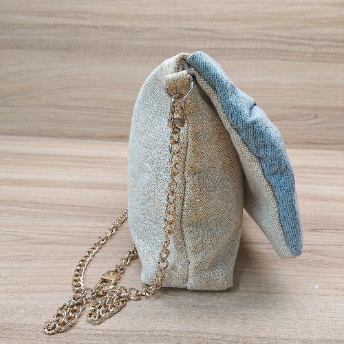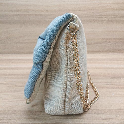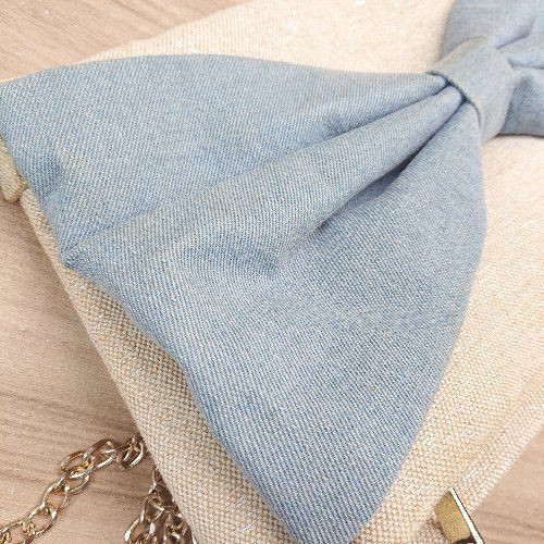 ◇ merry jenny リボン デニム チェーン 折り畳み チャック かわいい ショルダーバッグ ベージュ レディース E