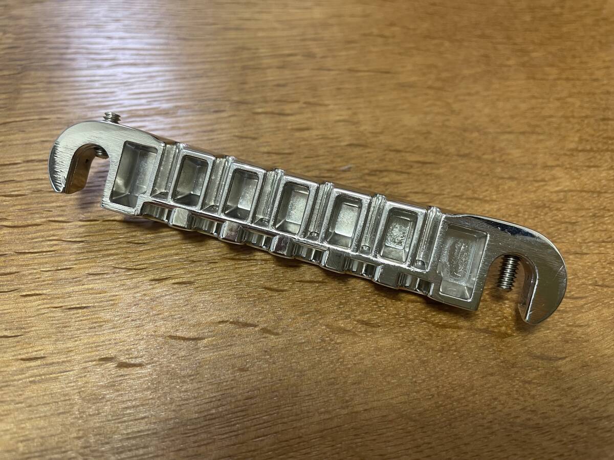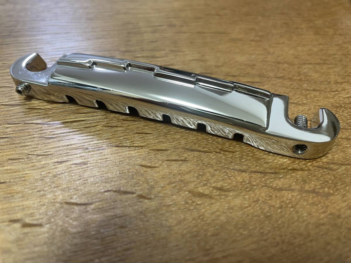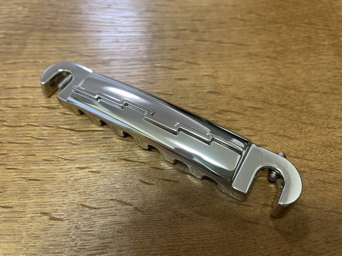 Les Paul SpecialやJuniorなどに付いているバーブリッジの交換用です。この商品を求められる方には説明不要と思いますが、より正確なピッチを求めてプレーンなブリッジから段差の付いたものに交換できます。