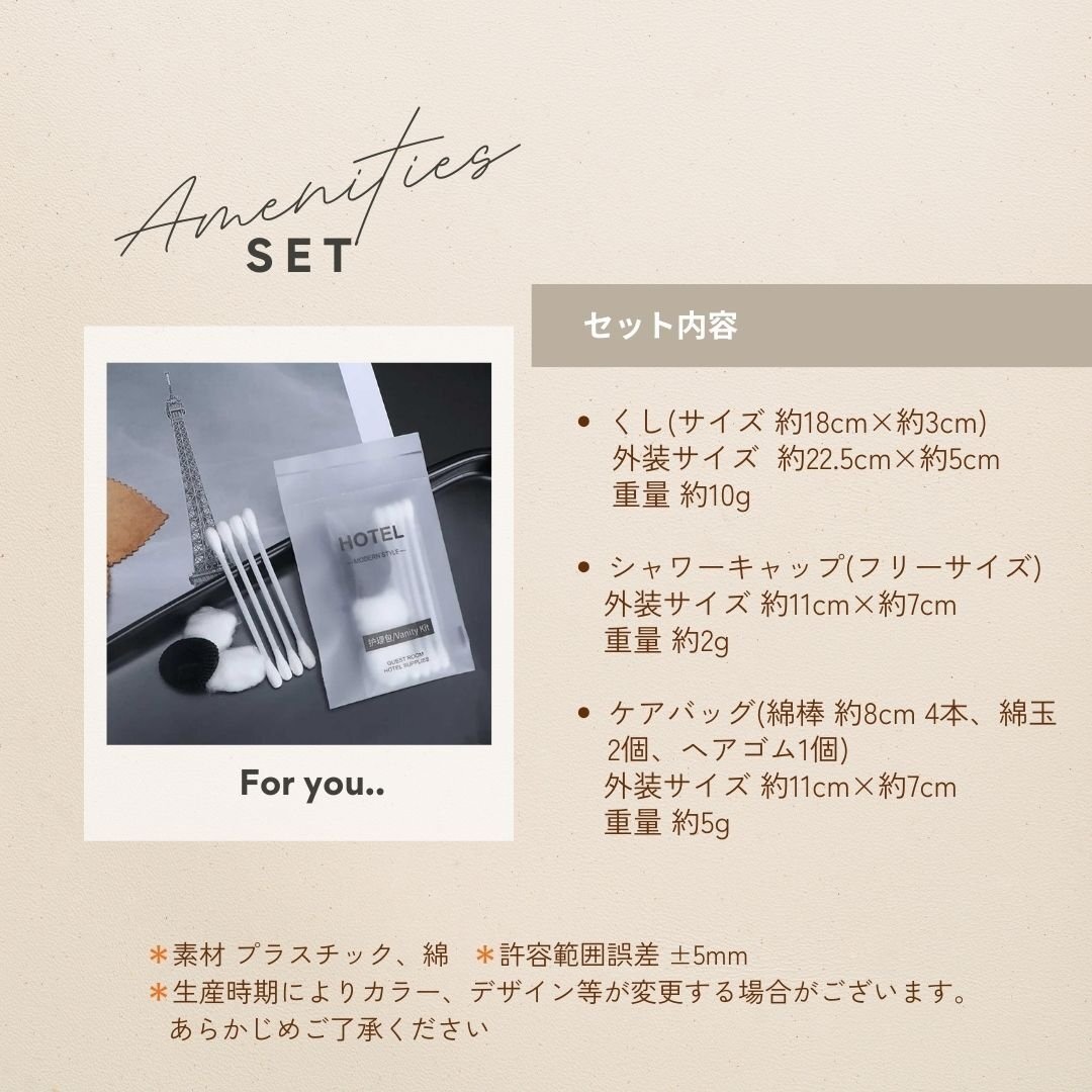 薄くコンパクトなアメニティセットなので旅行先や出張先に携帯しやすく、持ち運びに優れています。旅行先で使った後はそのまま捨てられるので、荷物になりません