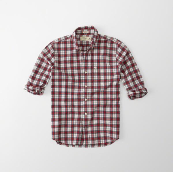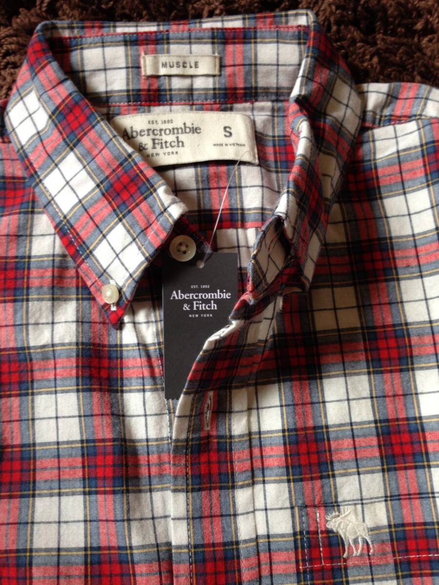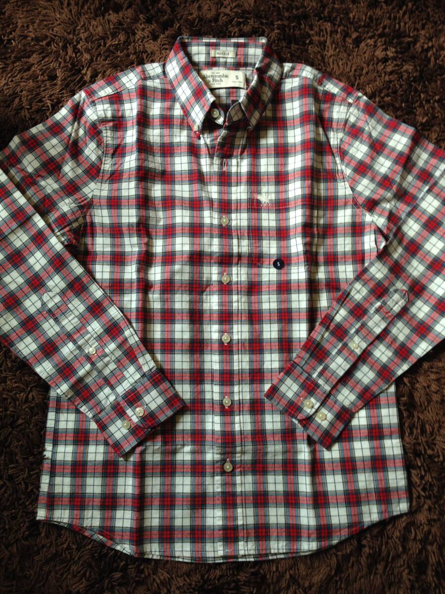 【新品】Abercrombie&Fitch アバクロ 長袖シャツ Plaid Shirt チェックシャツ ムース刺繍 S ホワイト Muscle Fit