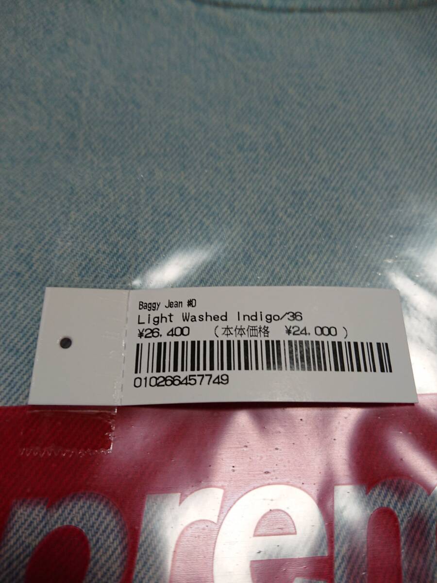 送料無料【 Light Washed Indigo ・36】Baggy Jean supreme 国内 新品 24aw シュプリーム バギー ジーンズ ライト ウォッシュド インディゴ
