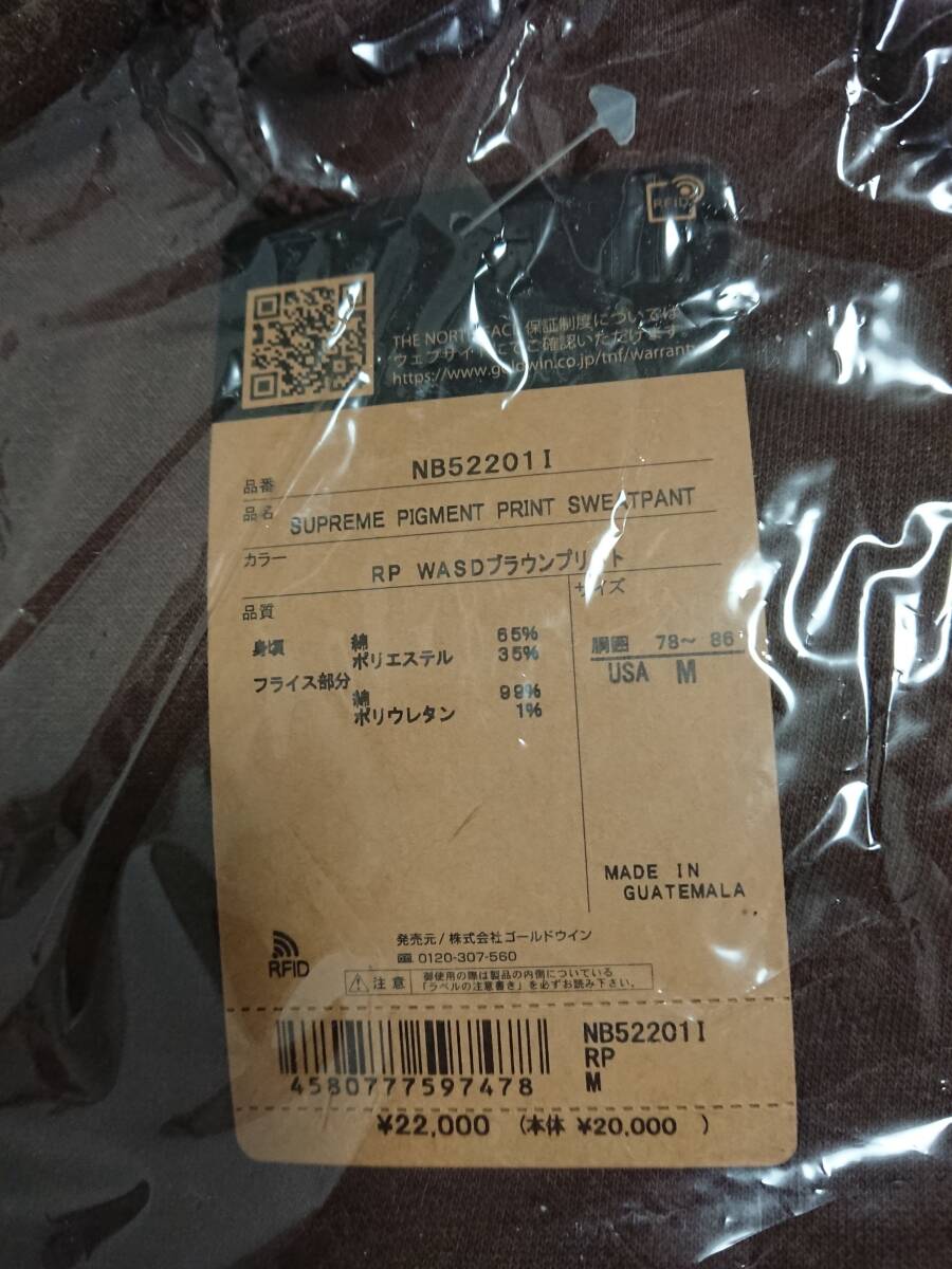 送料無料【茶色・M】supreme The North Face Pigment Printed Sweatpant 22aw 国内 新品 シュプリーム Brown ピグメント スウェットパンツ
