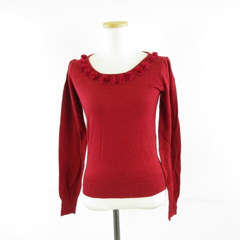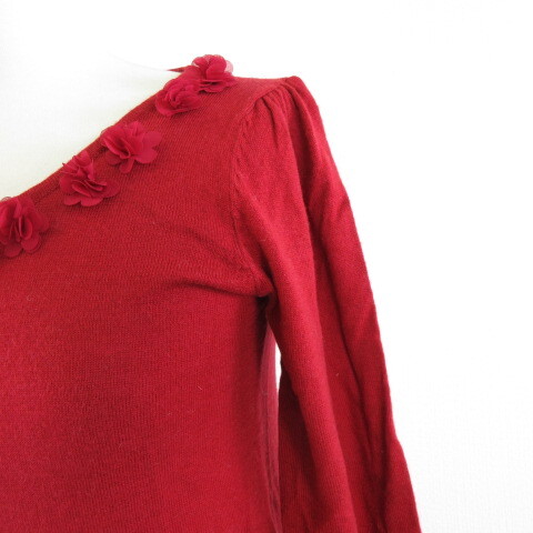 アースミュージック&エコロジー EARTH MUSIC & ECOLOGY ニット カットソー 長袖 赤 S *A665 レディース