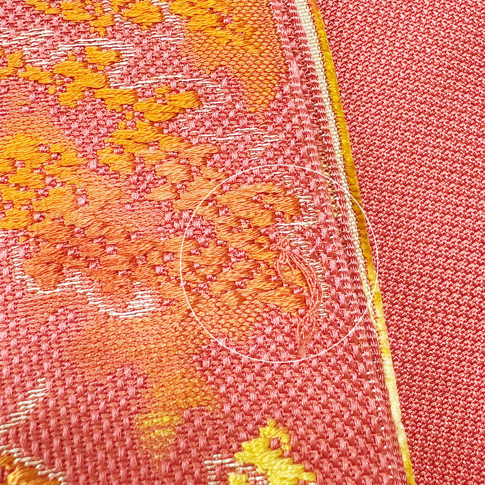 | 品名 | 【中古】 名古屋帯 正絹(金銀糸除く) ピンク 黄緑 マルチカラー 和服 呉服 松葉仕立て 着物 レディース 女性 |