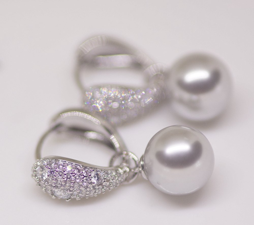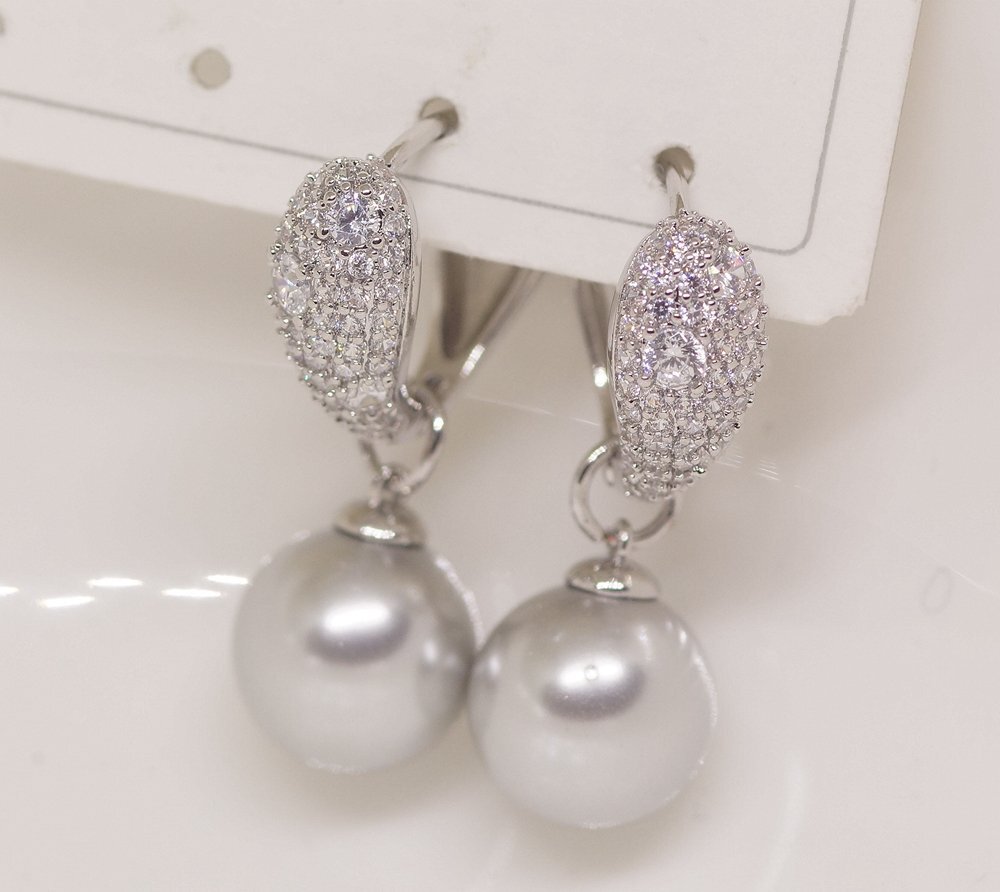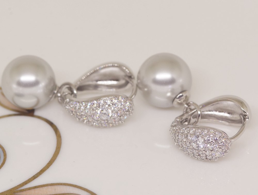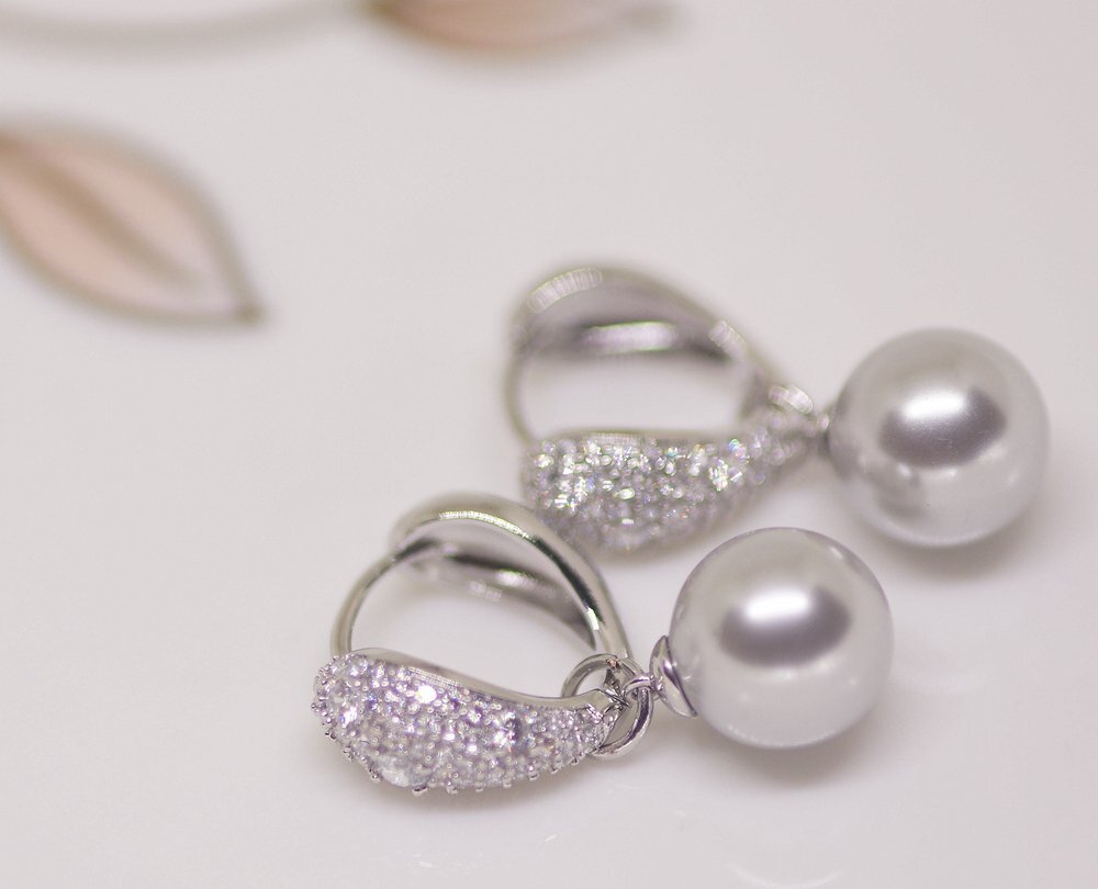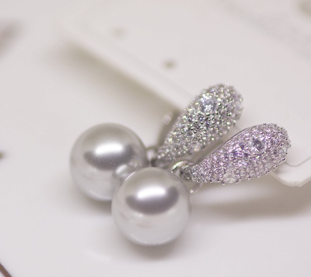 18K RGP プラチナ ダイヤ CZ パール リング ピアス yp5031 |