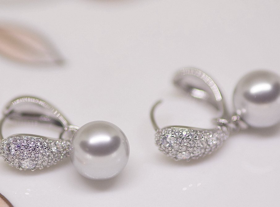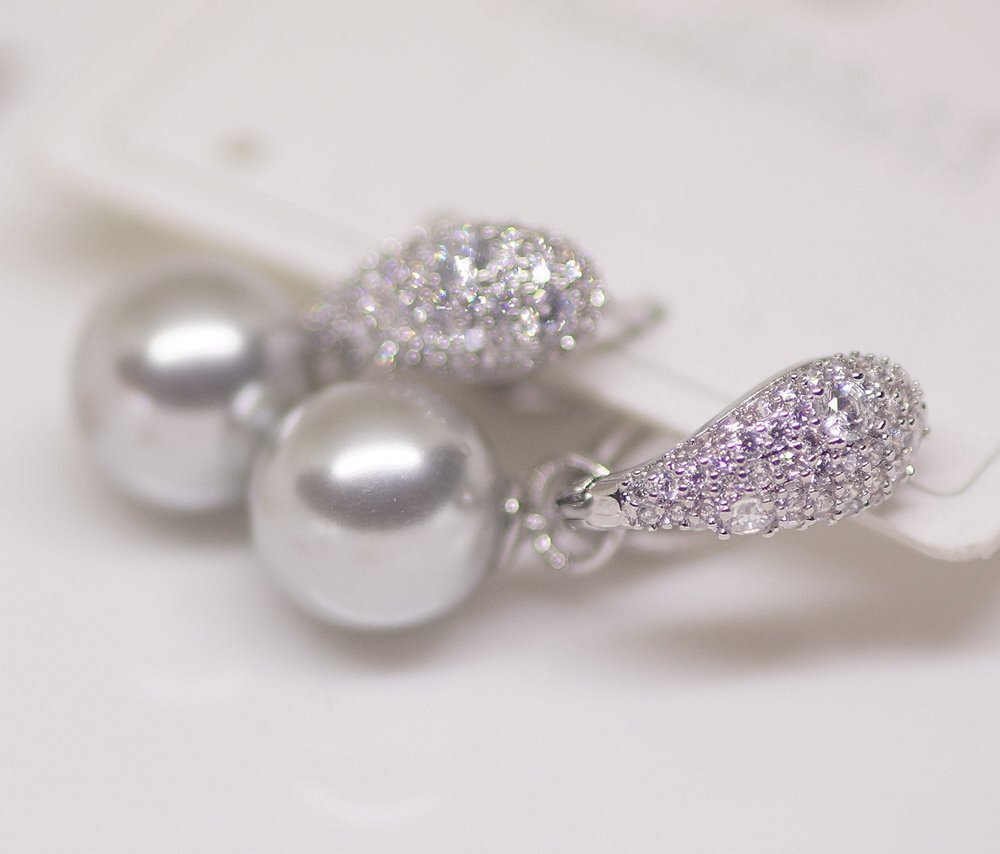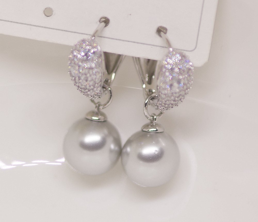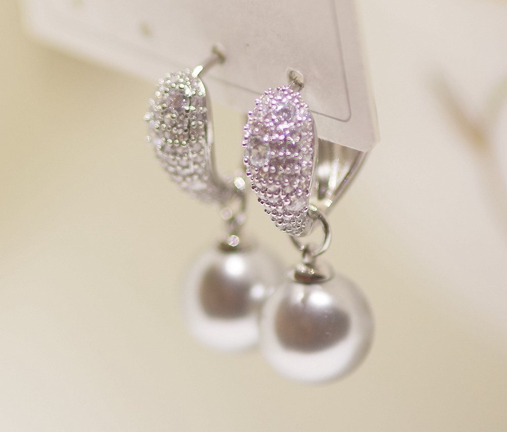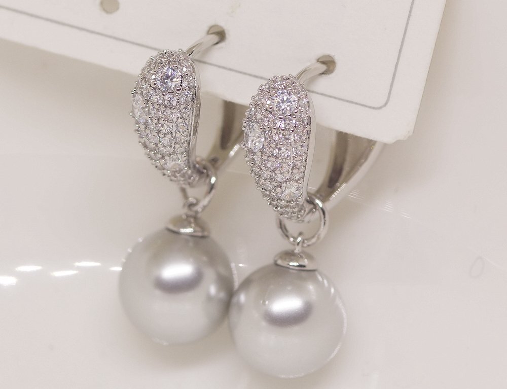18K RGP プラチナ ダイヤ CZ パール リング ピアス yp5031 |