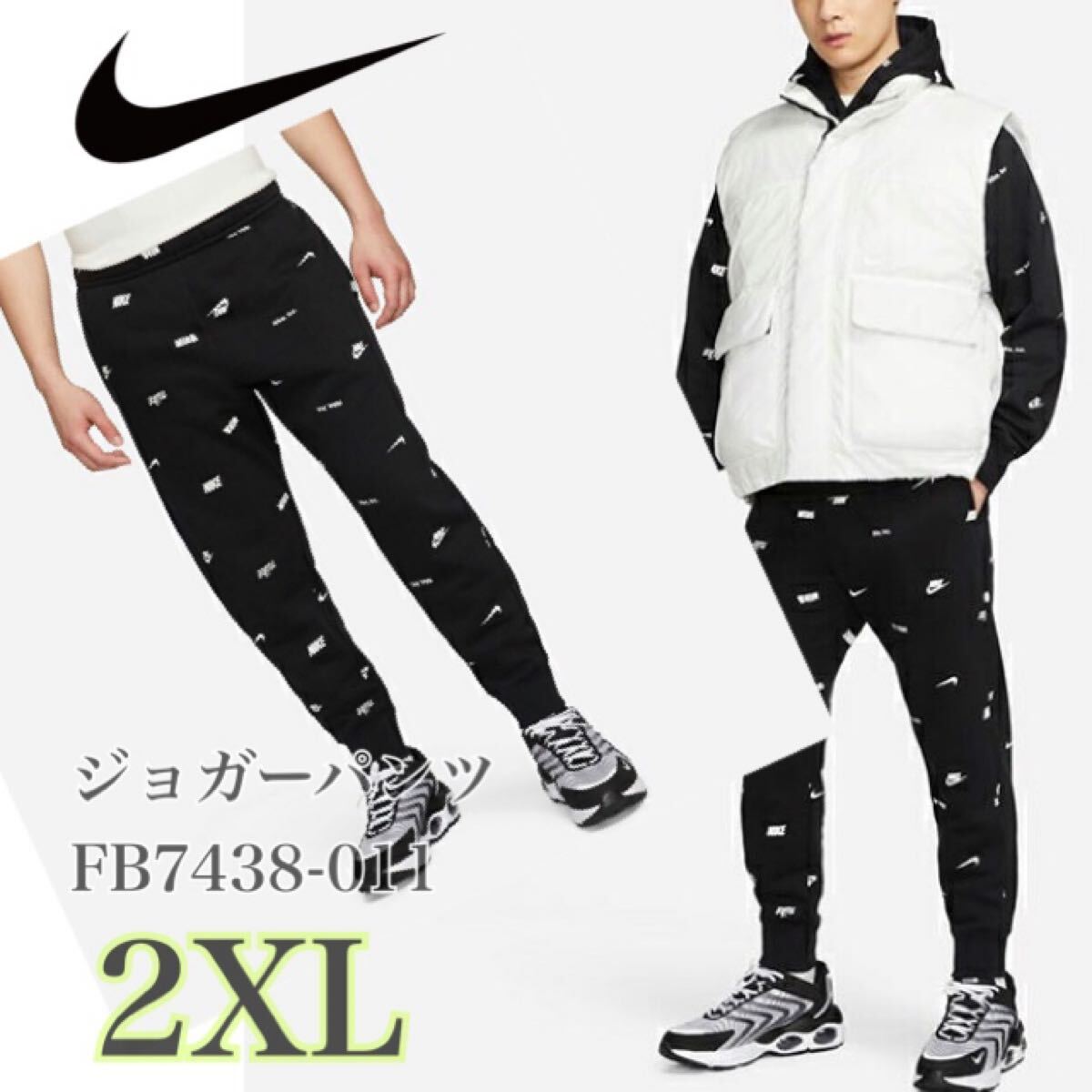 ナイキ スウェットジョガーパンツ メンズ CLUB+総柄裏起毛スウェットジョガー (FB7438-011)黒2XL