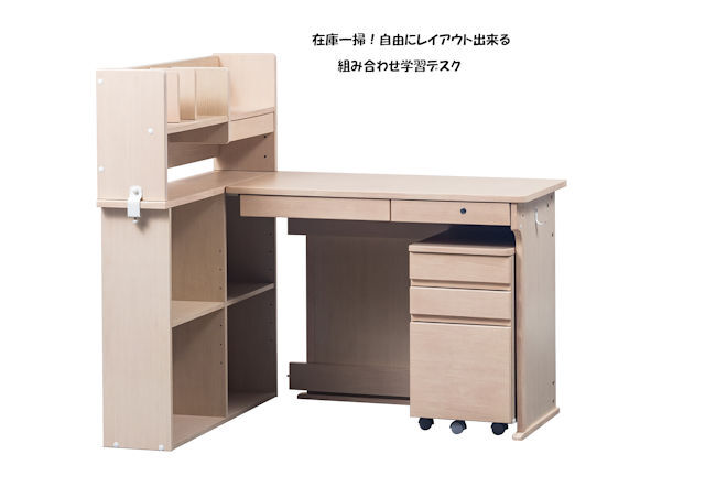 訳あり アウトレット レイアウト自由自在 ユニットデスク3点セット 学習机 学習デスク シェルフ ワゴン 送料無料 新品(343)