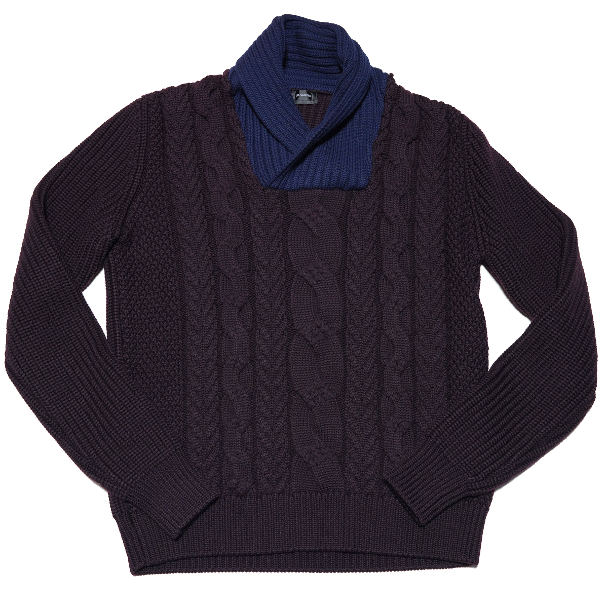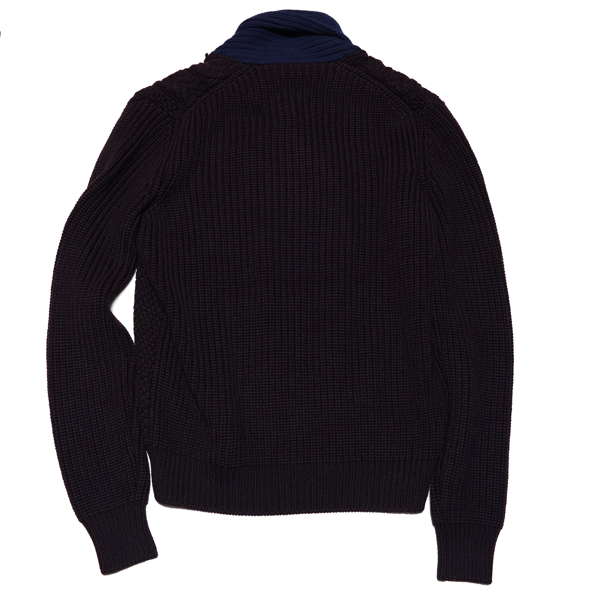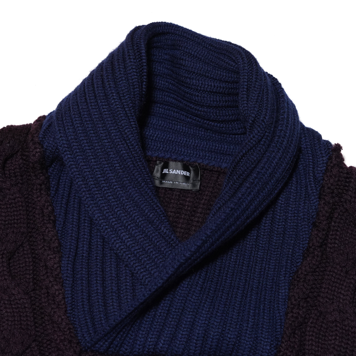 ジルサンダー ショールカラー バイカラー ケーブル ニット セーター ローゲージ 48 ブラウン ネイビー バーガンディ JIL SANDER