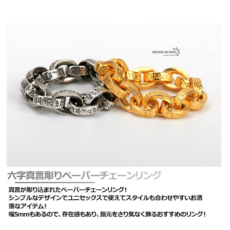 六字真言が彫り込まれた太めのペーパーチェーン(紙の鎖)指輪!