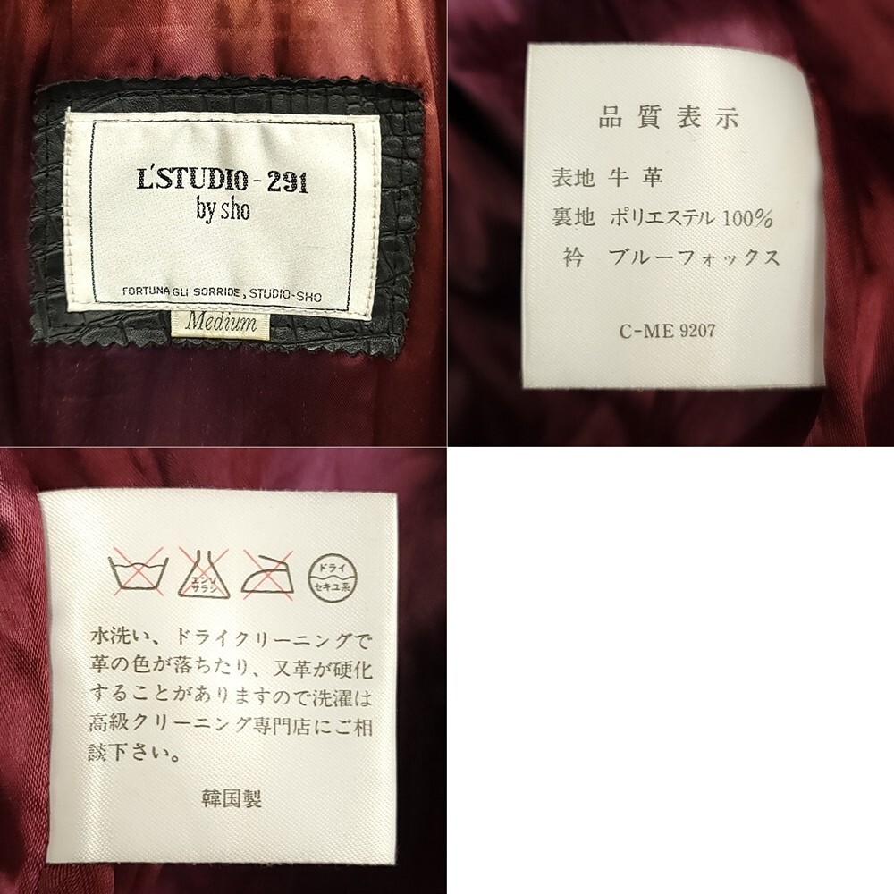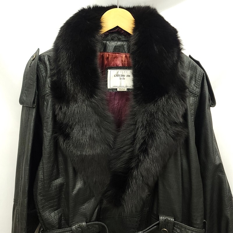 261768Y【Mサイズ】L'STUDIO-291 by SHO ブルーフォックス ファー レザーコート ブラック 本革 牛革 エルスタジオ メンズ